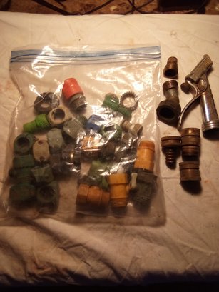 Lot Of Garden Hose Attachments Adapters And One Nozzle Some Brass