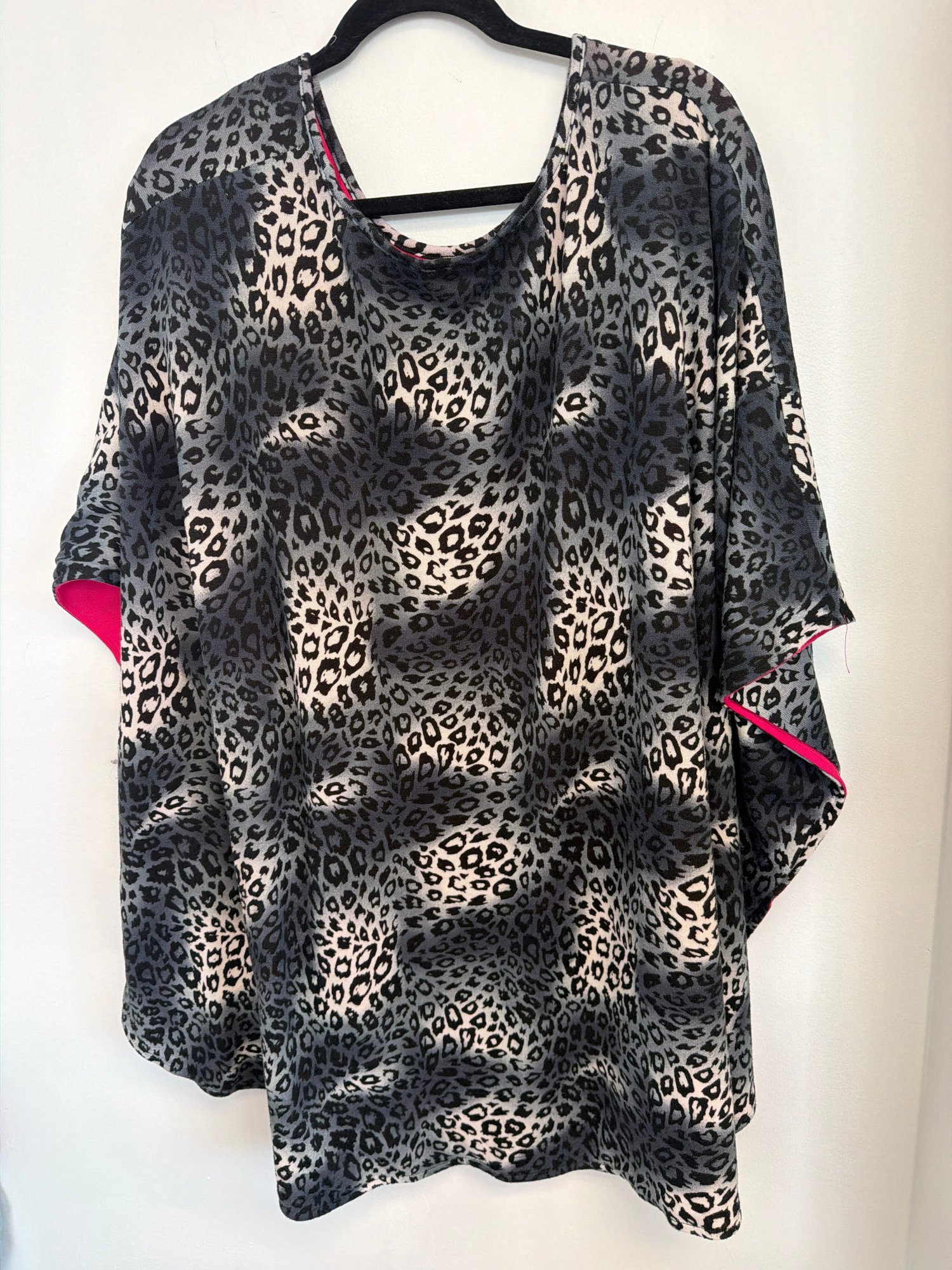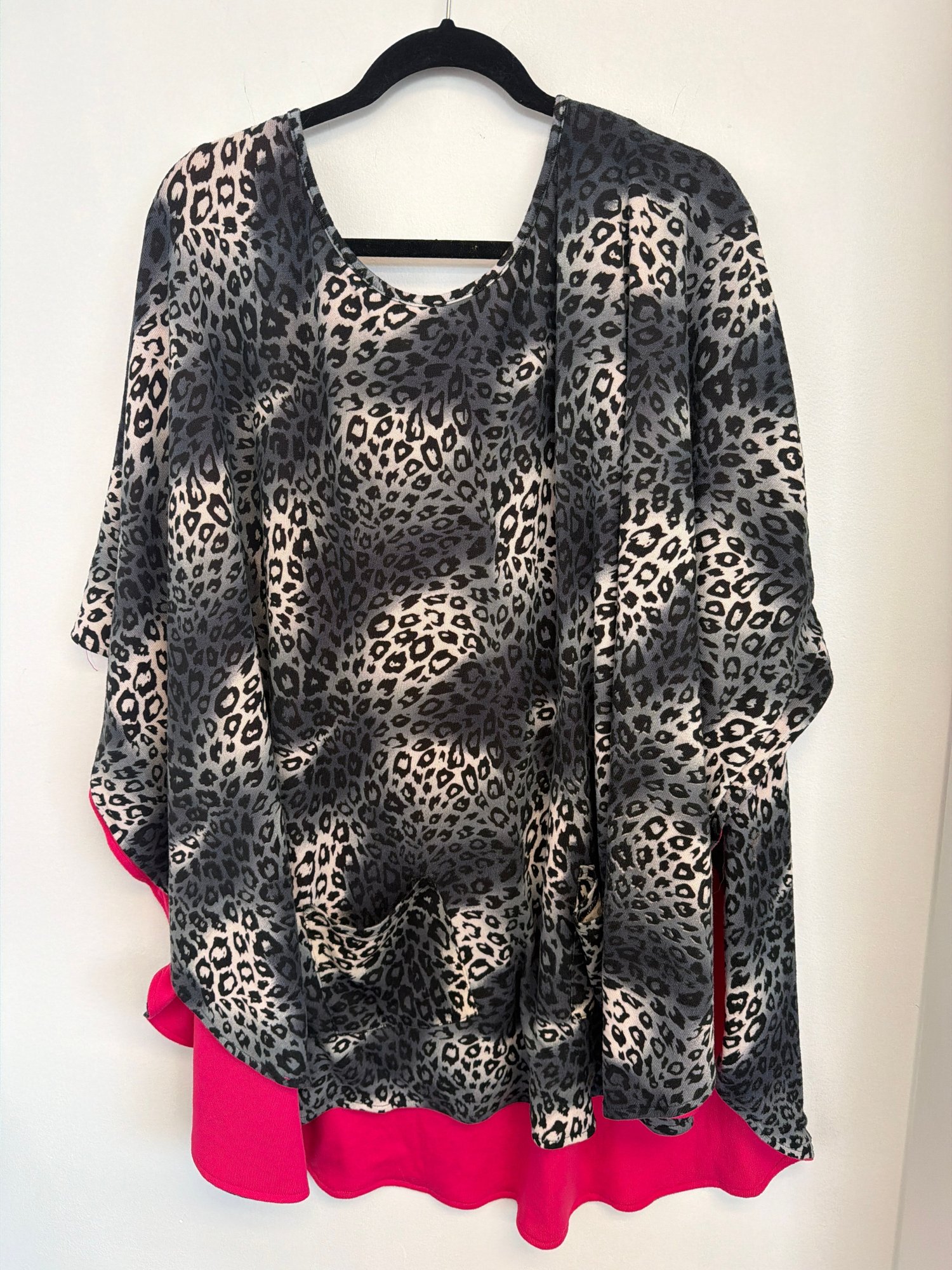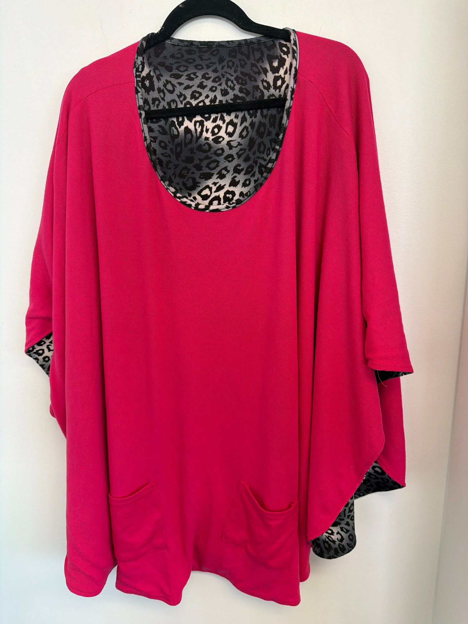 Iman Pink Layered Jersey Reversible Poncho Tunic Top Featuring A Leopard Print On The Reversible Side