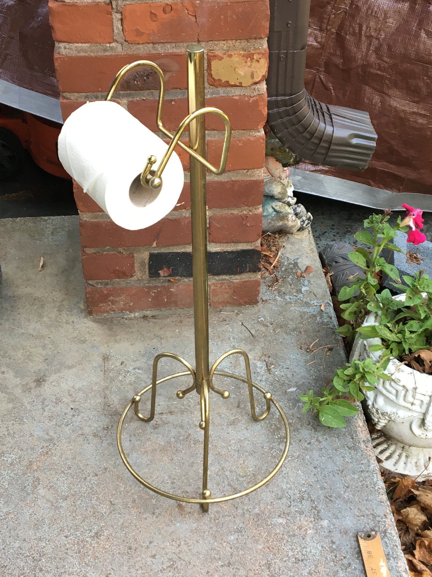 MCM Bathroom Brass Stand up Toilet Paper Holder. In nice Estate found condition. - See photos for overall condition.