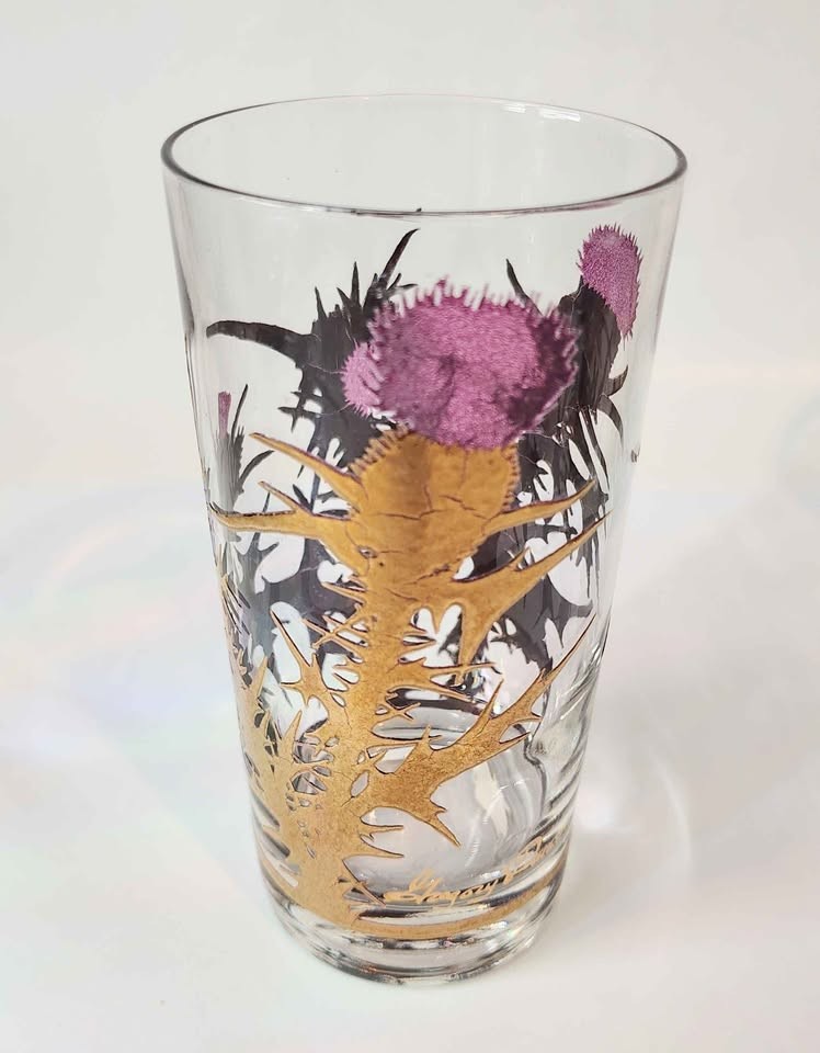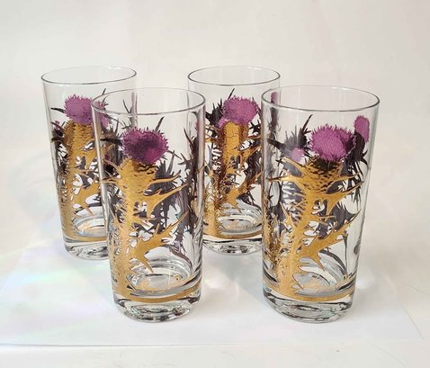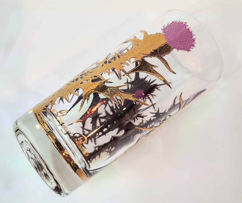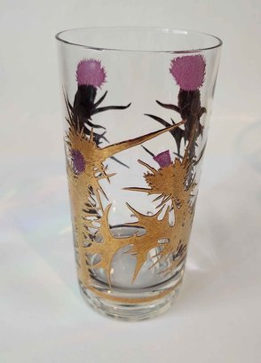 West Virginia Gregory Duncan Purple and 22k gold thistle highball glasses