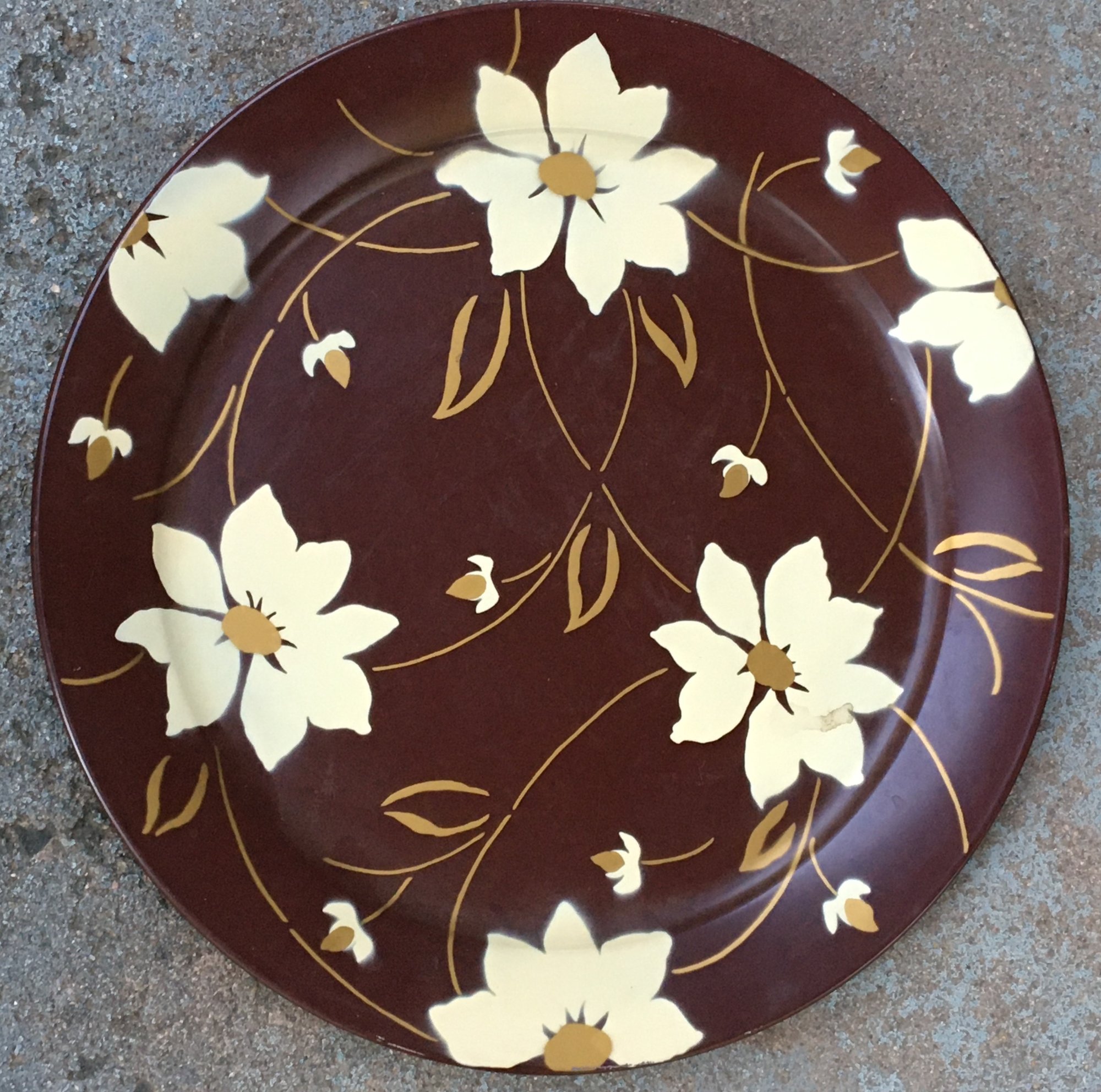 MCM Social Supper Tray - Pressed Steel Serving Charger Dinner Tray. - In decent Estate found condition in need of clean up. - The Tray is very large at 19" diameter and made of heavy automobile steel with floral baked Enamel Lithograph Print. - See Photos for overall condition and size.