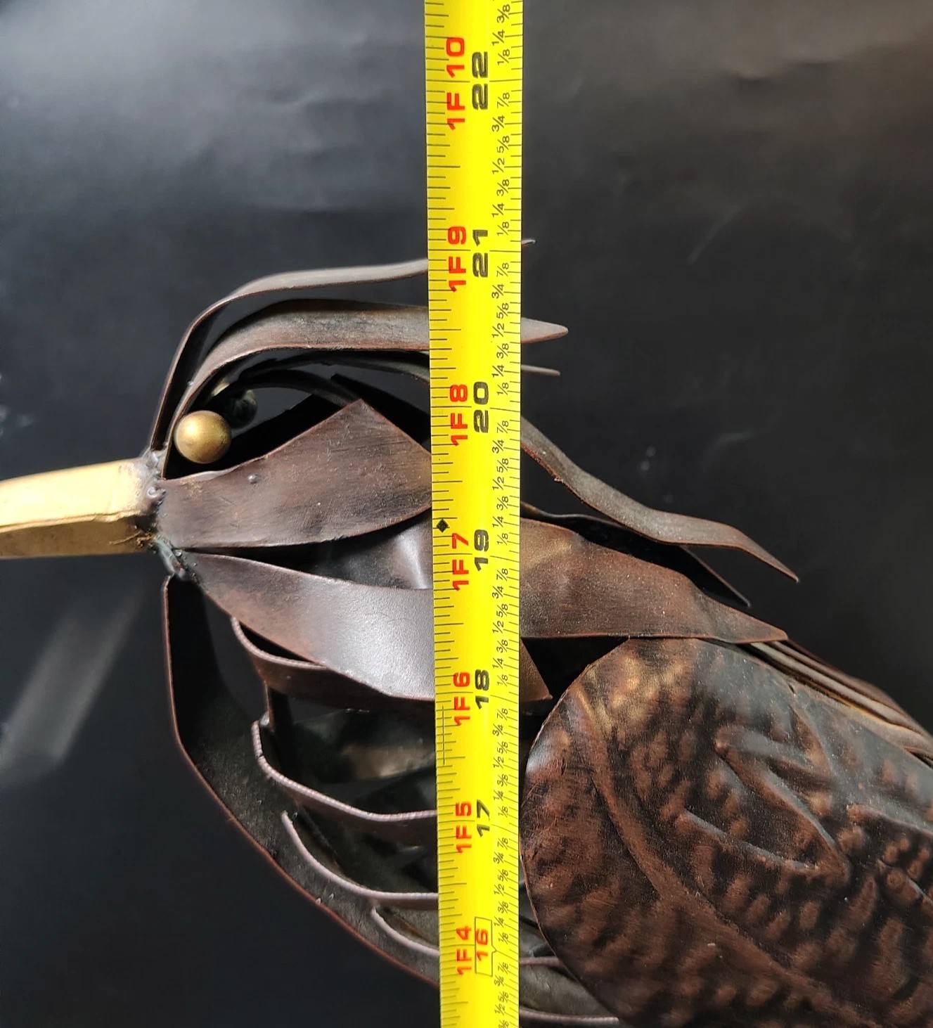 Wonderful Sculpture was displayed indoors but it would work outside as well over 21" tall and approx.18" long