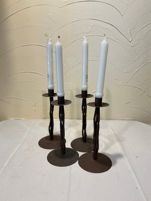 Set of 4 metal candlestick holders