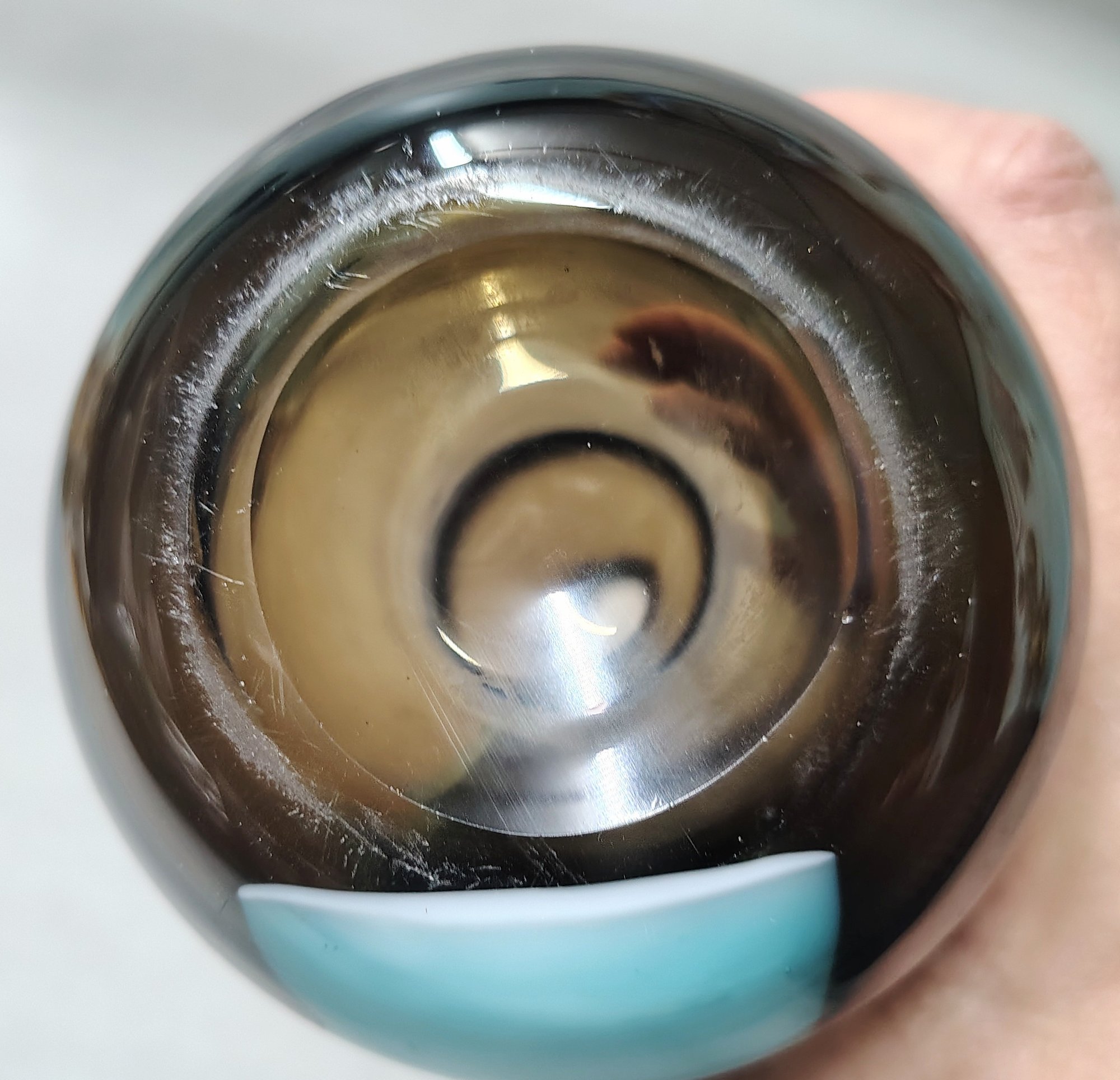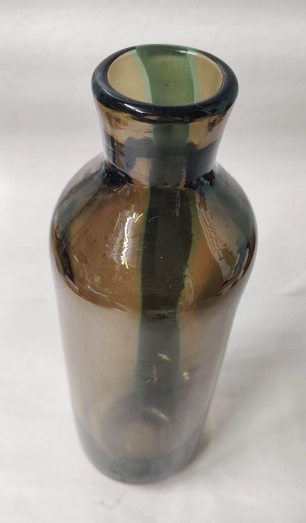 Very nice smoke colored glass with light blue stripe thick bottle 13" tall