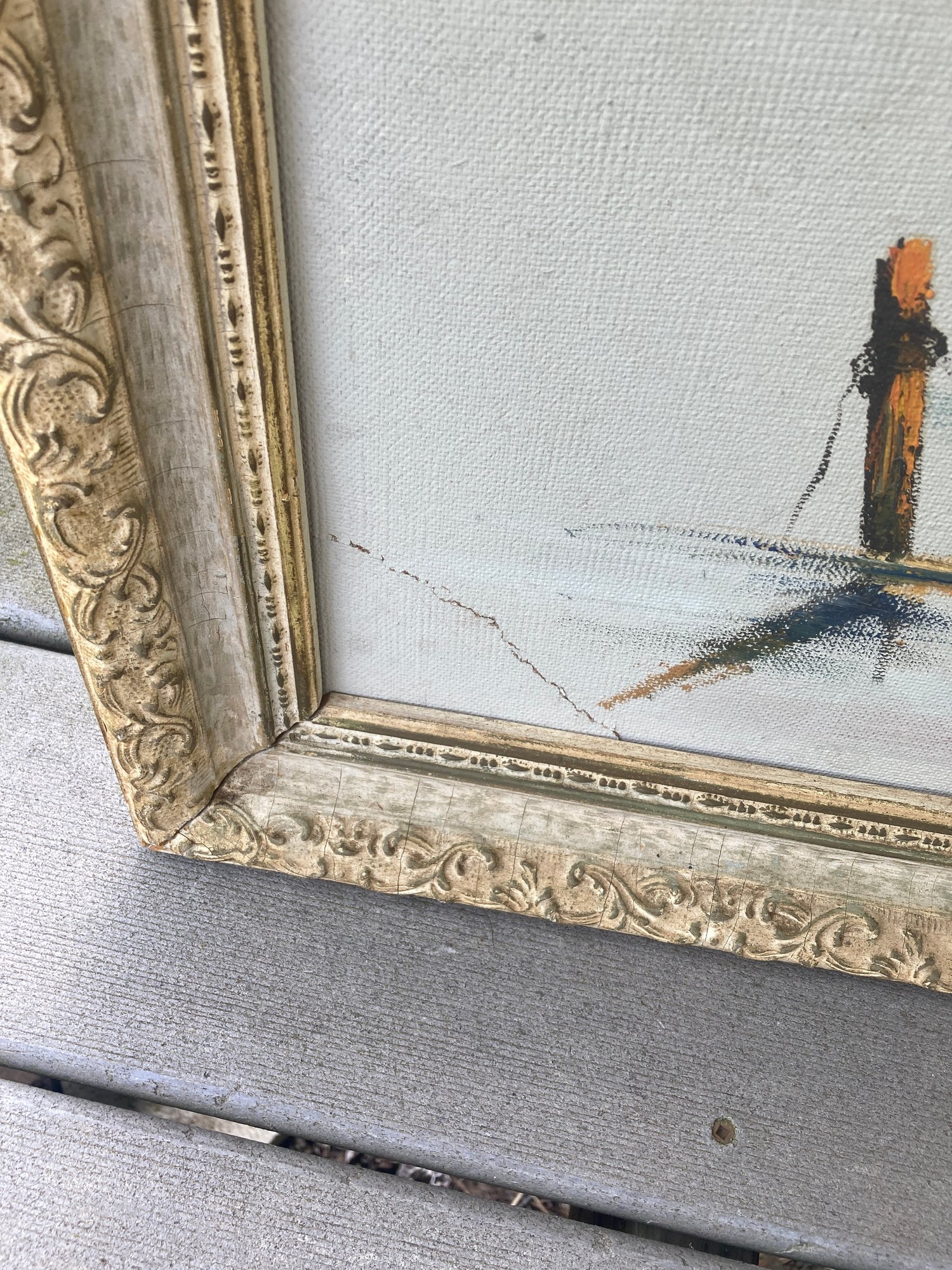 Beautiful painting , Please NOte damage to one corner as pictured, might be able to do an easy fix or leave as is