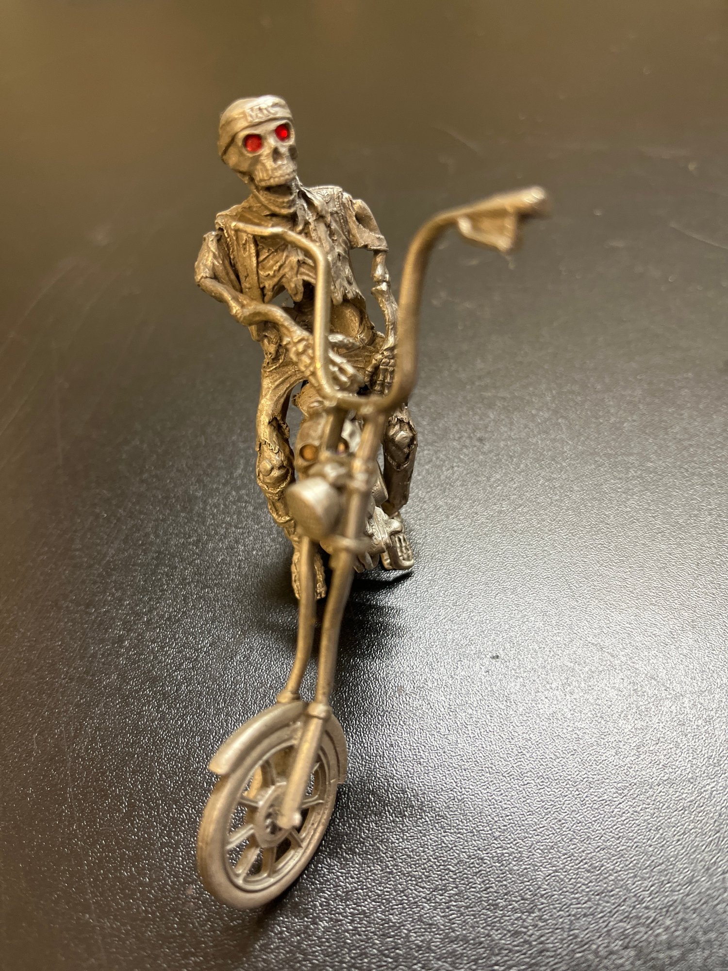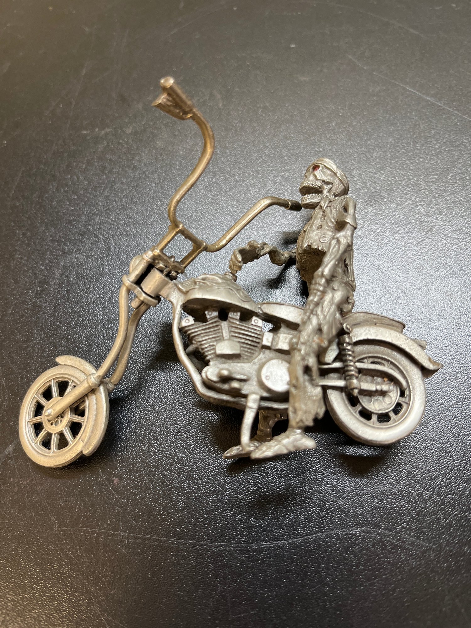 See photos for details. Measures 4 inches wide by 3 inches high. Front wheel is a bit loose needs