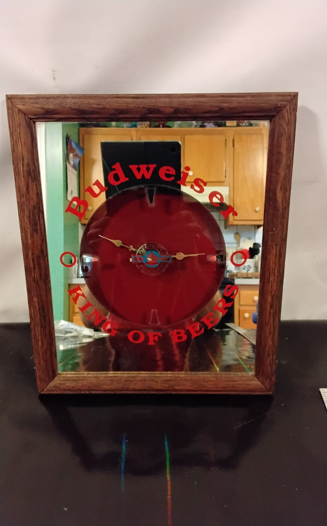 Battery operated Mirrored Budweiser clock in working condition