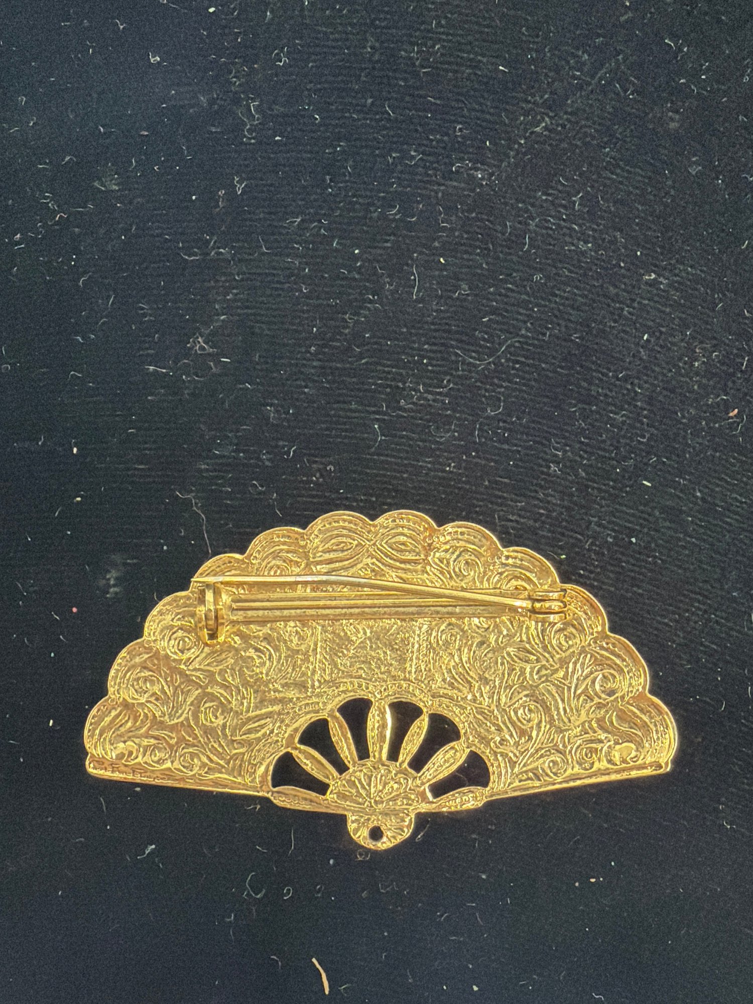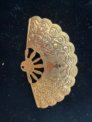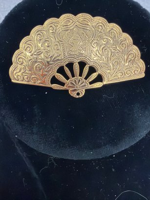 Gold Colored Hand Fan Brooch
