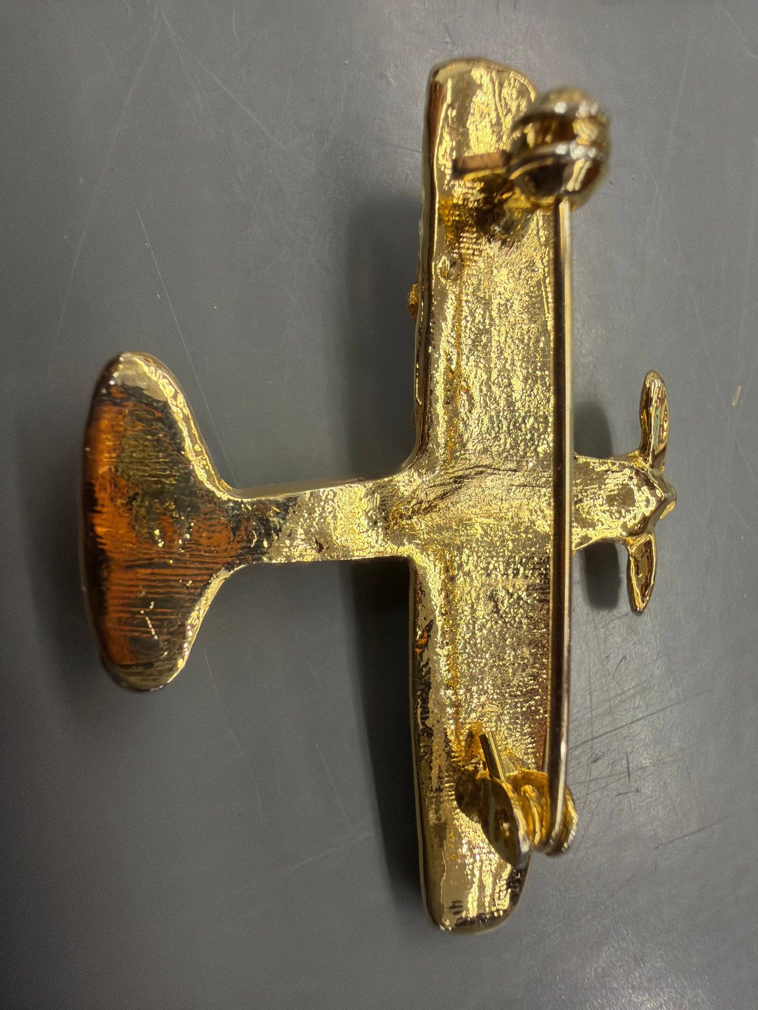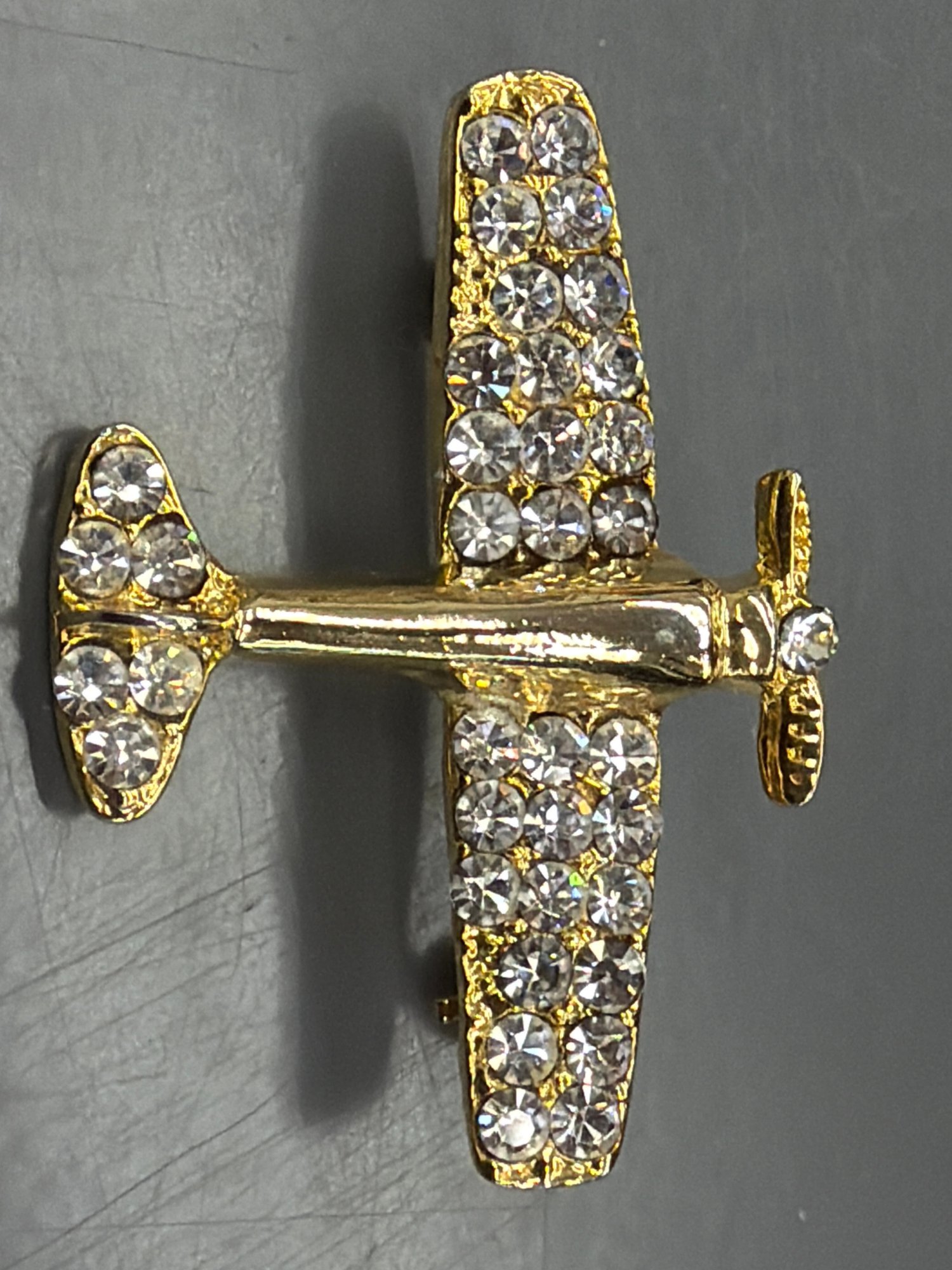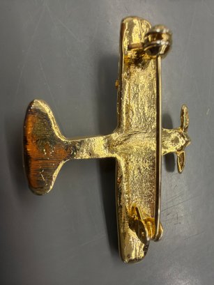 Gold-tone Airplace Brooch Adorned With Clear Rhinestones