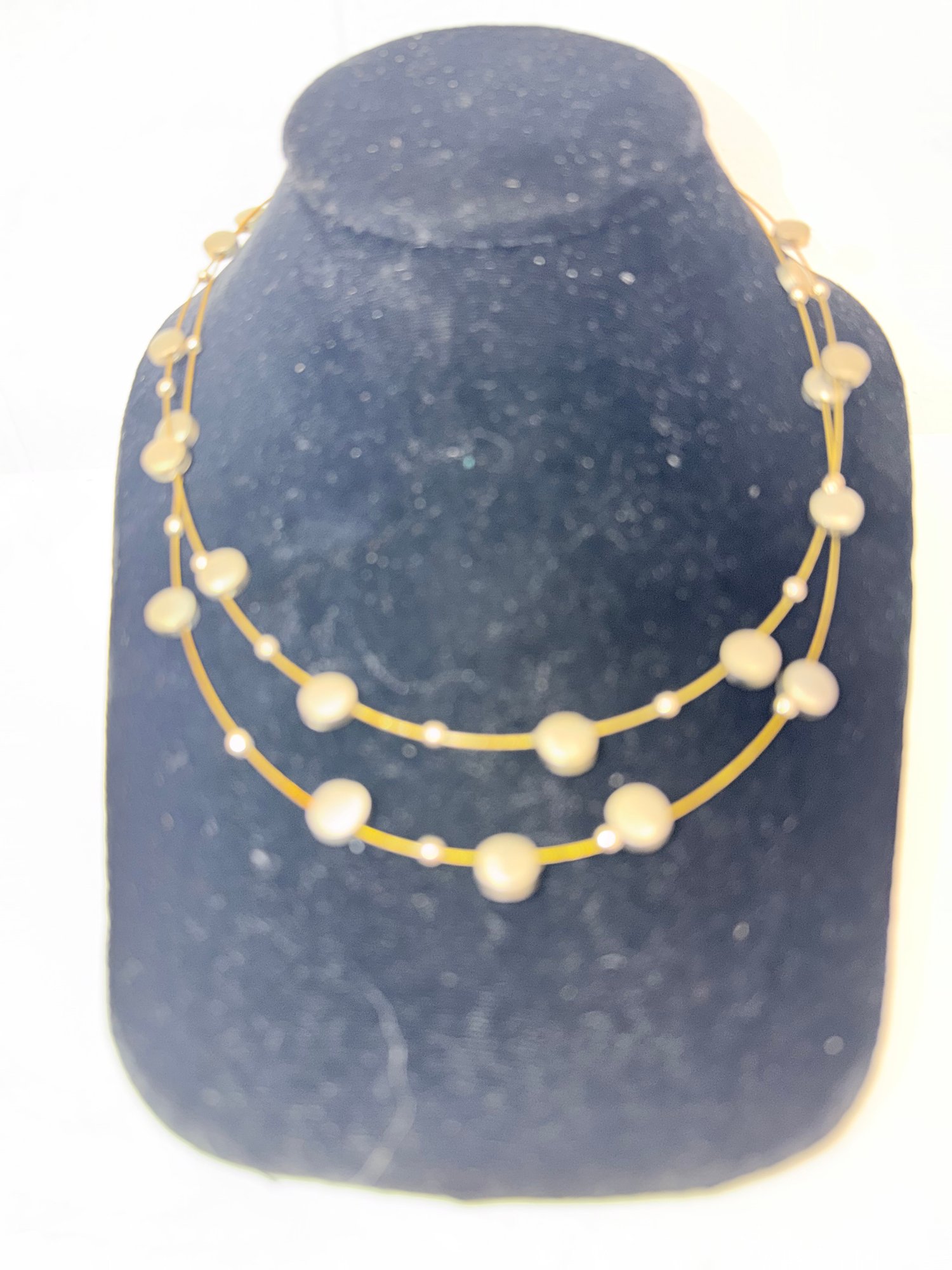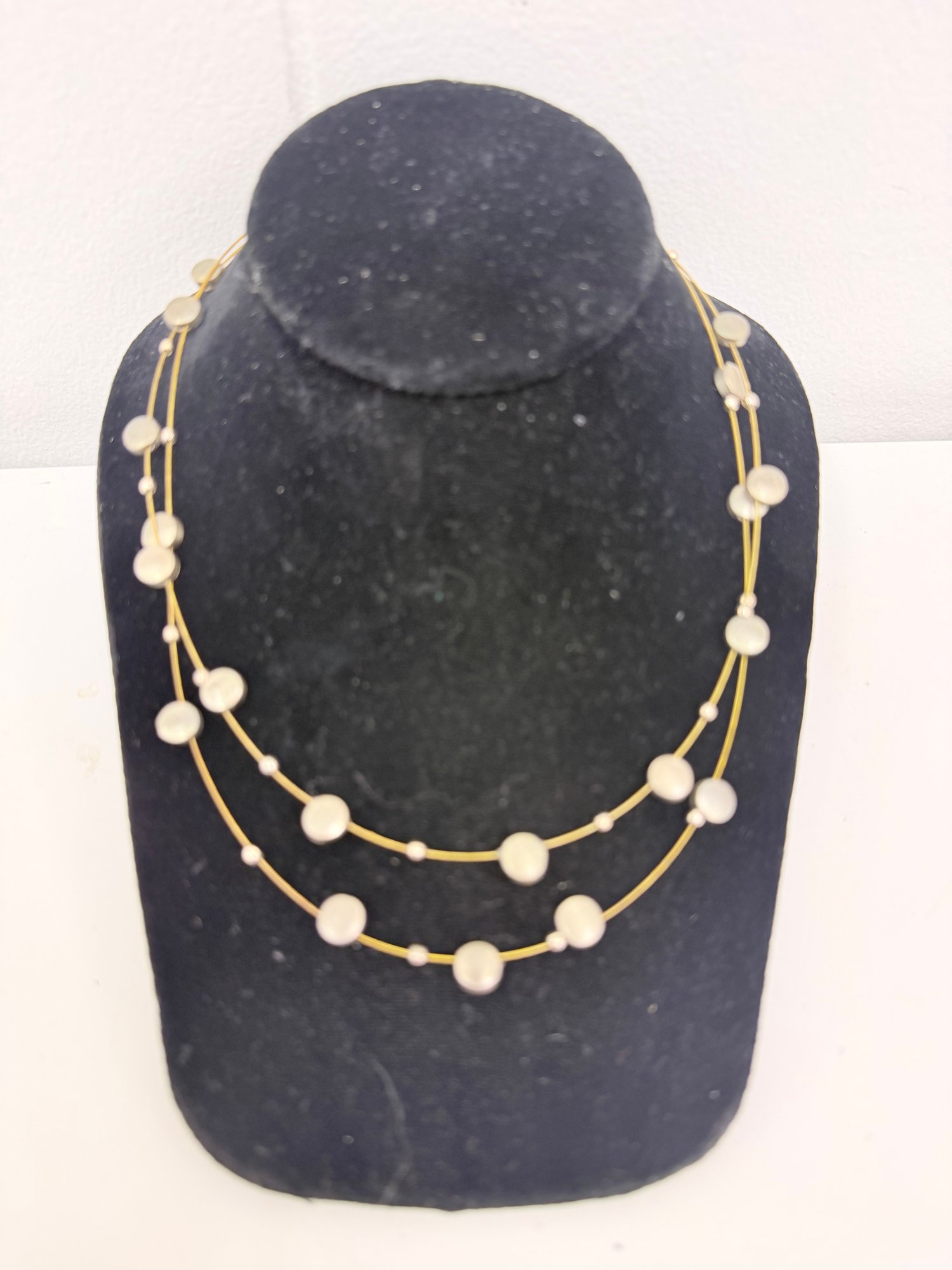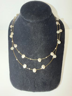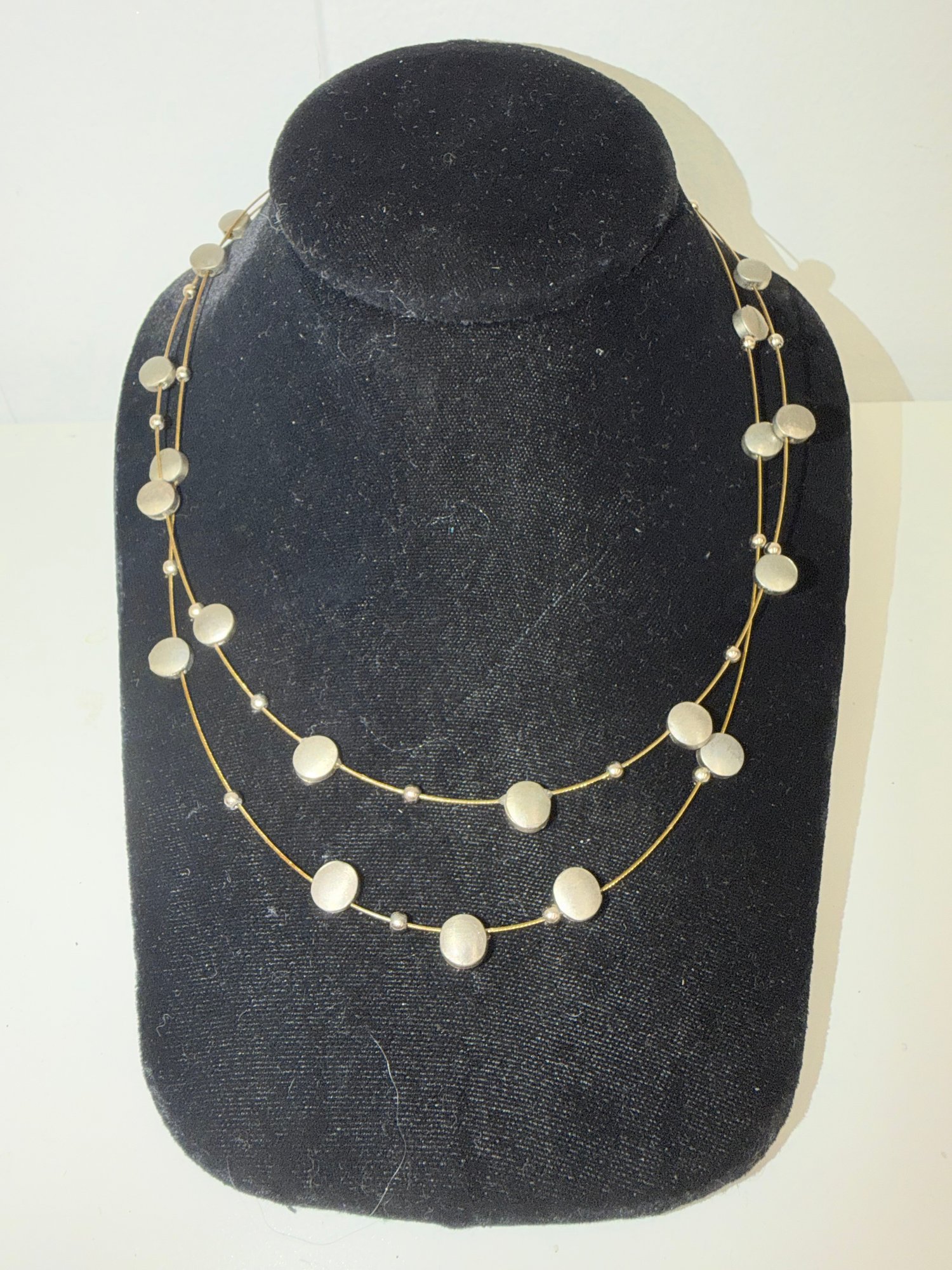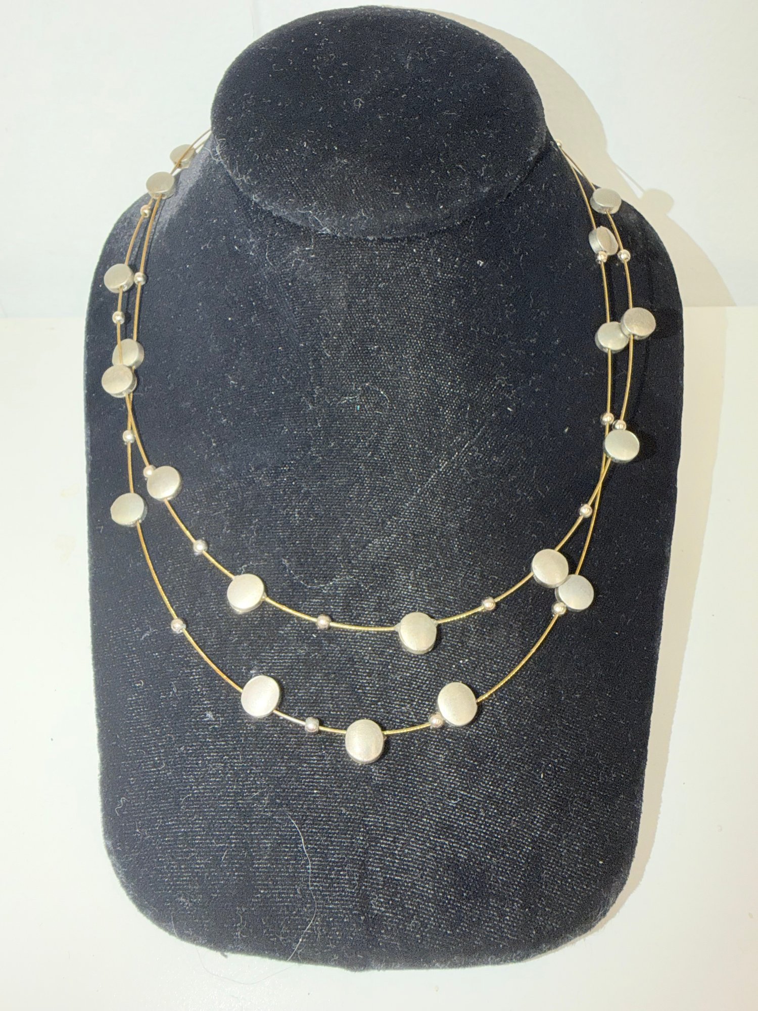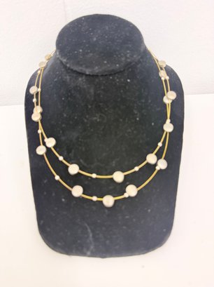 Gold-tone Double-strand Necklace Featuring Silver Beads