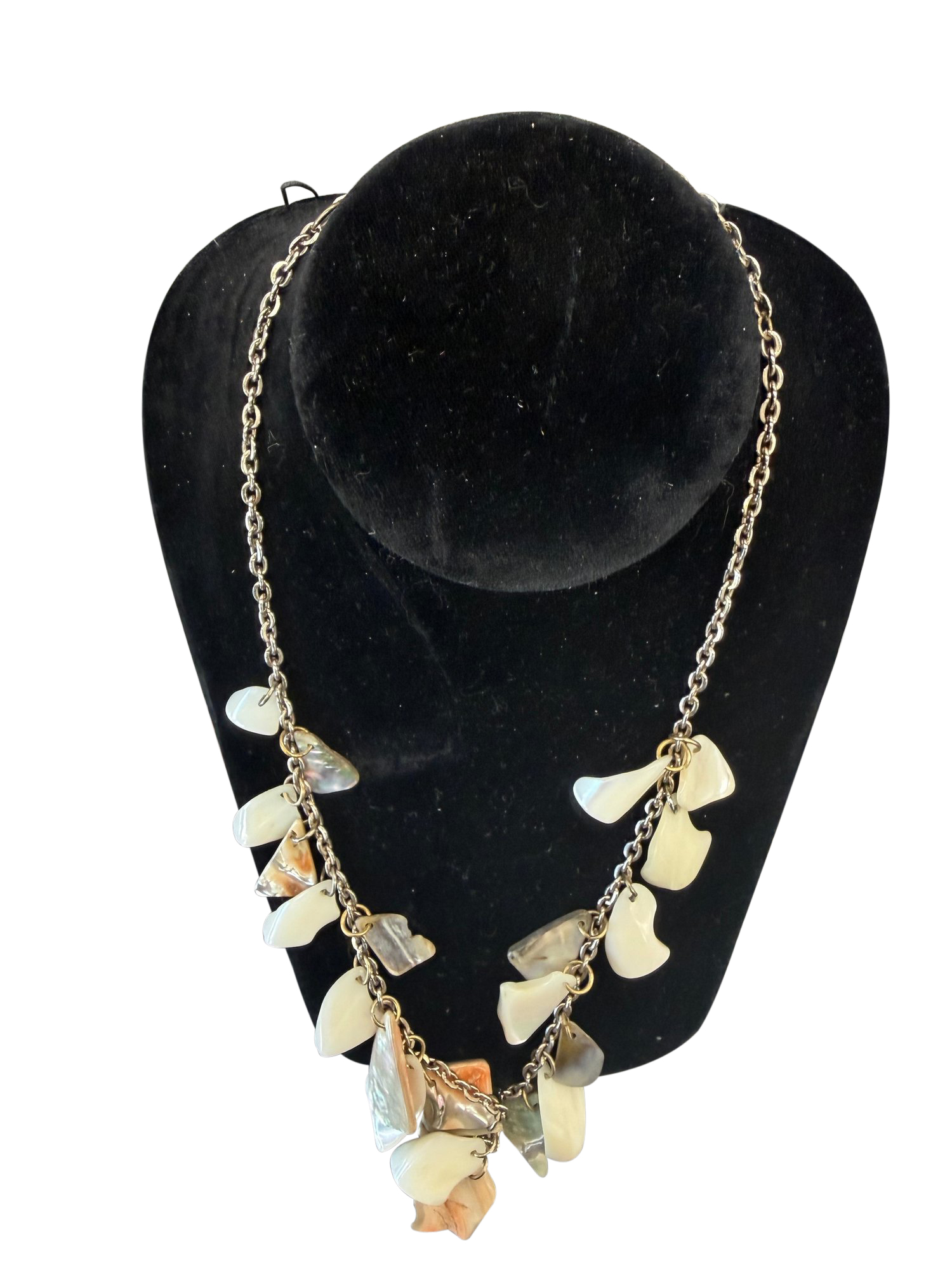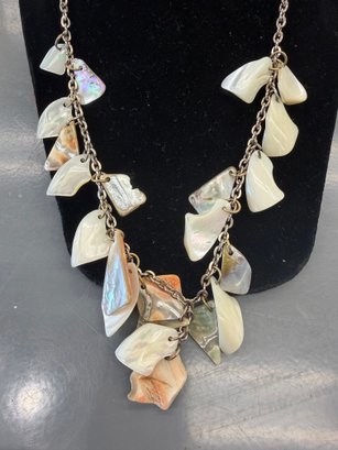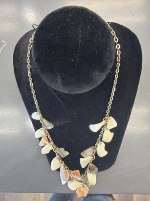 Gold-tone Necklacce Wit Irregular Petal-shaped Mother -of-pearl Shell Dangles