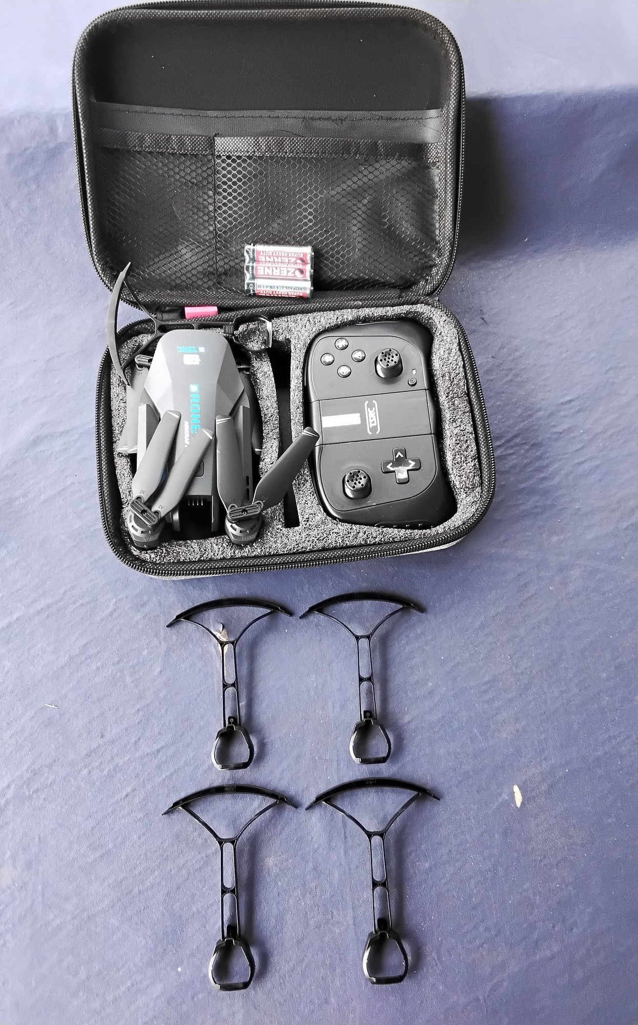 RC Drone with case, doesn't look like its ever been used, the batteries are still factory sealed but I can't promise anything