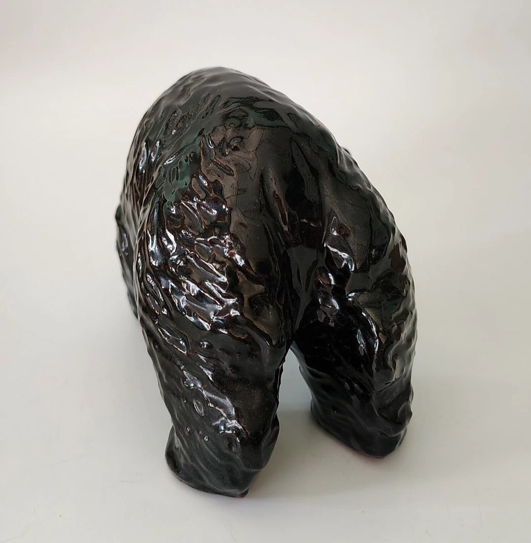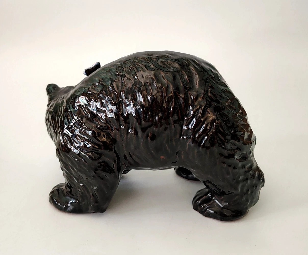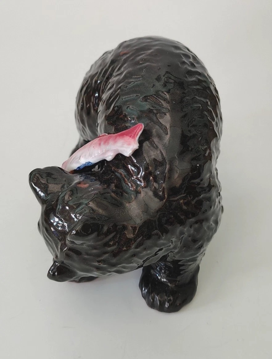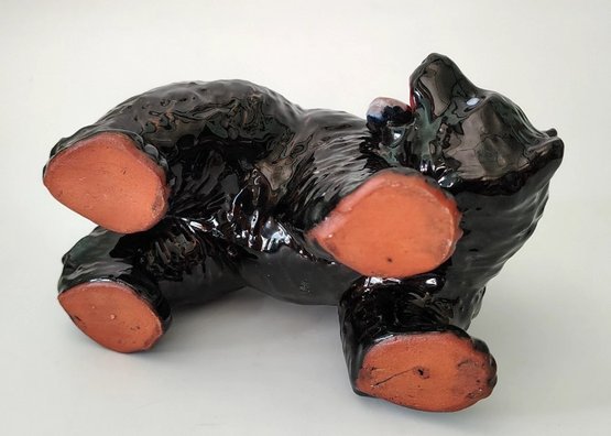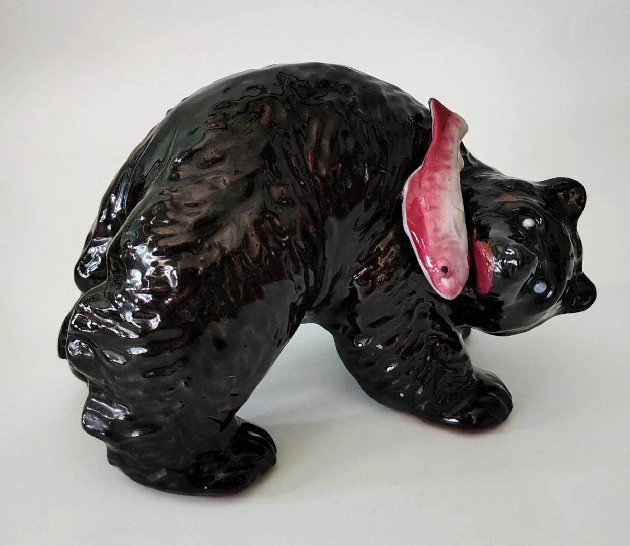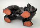 Redware Pottery Bear with Salmon Statue/ Figurine 7" long 5" tall