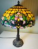 The lamp is a reproduction with a heavy shade that appears to be made of some kind of thick plastic material - it's difficult to determine it's exact composition.