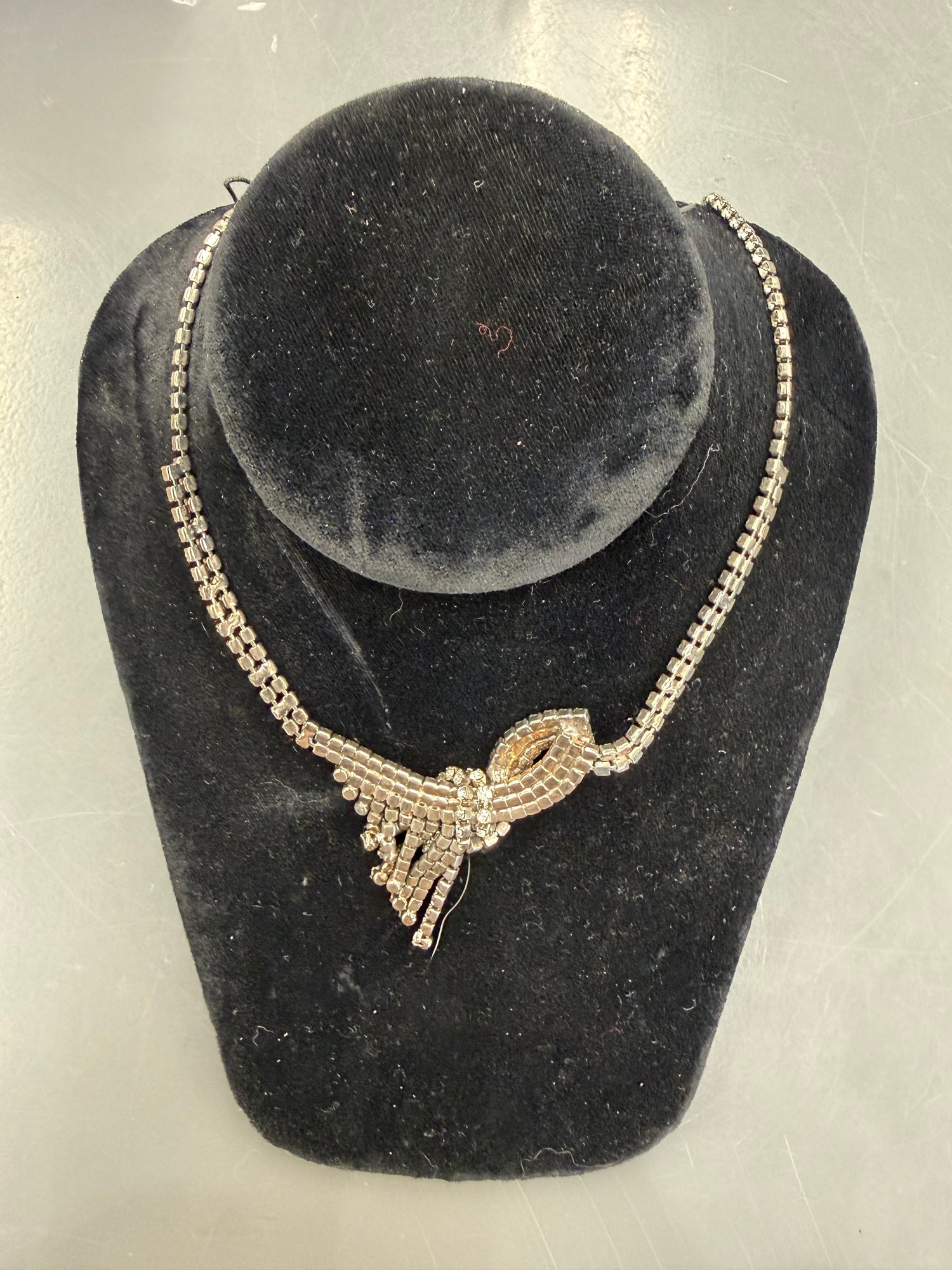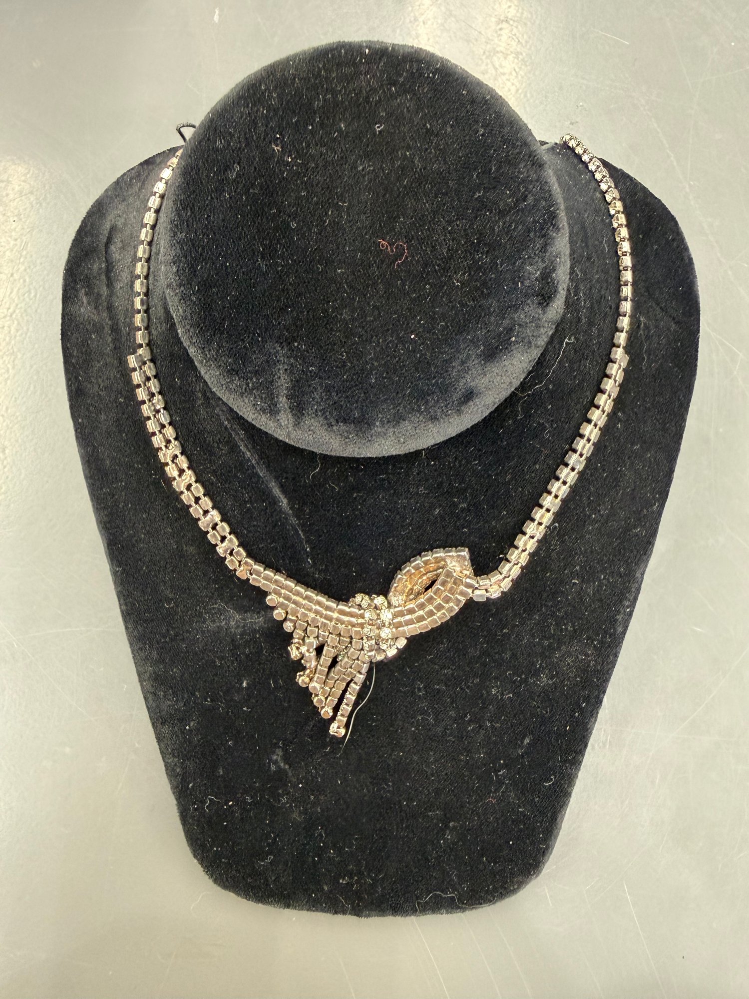 Rhinestone Statement Necklace With A V-shaped Drop Design