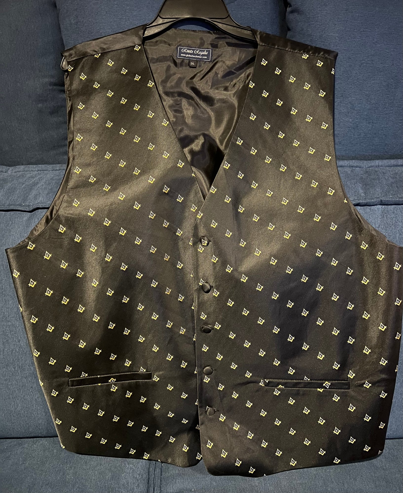 Rivetz Of Regalia Mens Black Vest With āGā in gold Design Size 3XL
