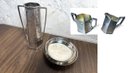 W.B. Manufacturing Co. silverplate vase, open sugar bowl and creamer with two Oneida silversmiths silverplate dishes.
