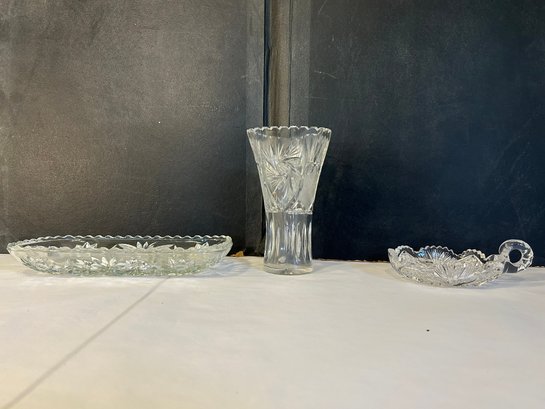 Vintage Rectangular Clear Cut Glass Serving Tray Platter 12" Ready For Christmas L. 12” w: 6 1/2” H: 2”
