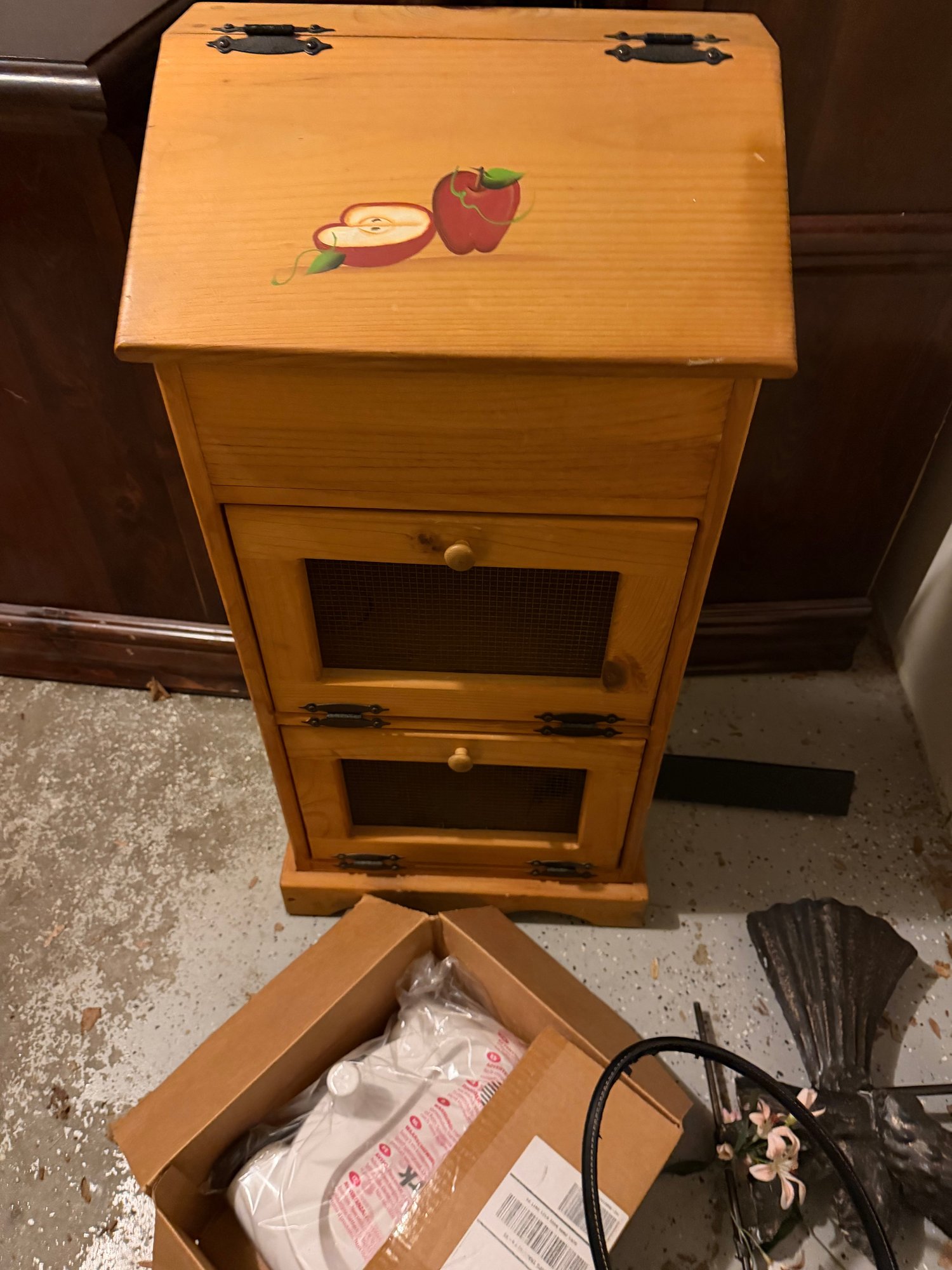 Solid Wood Primitive Style Farmhouse Kitchen Storage Cabinet Bin For Potatoes And Onions Etc