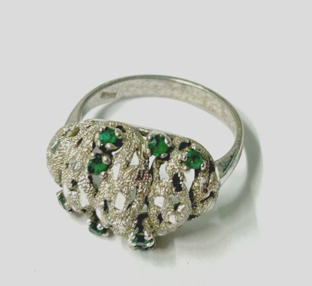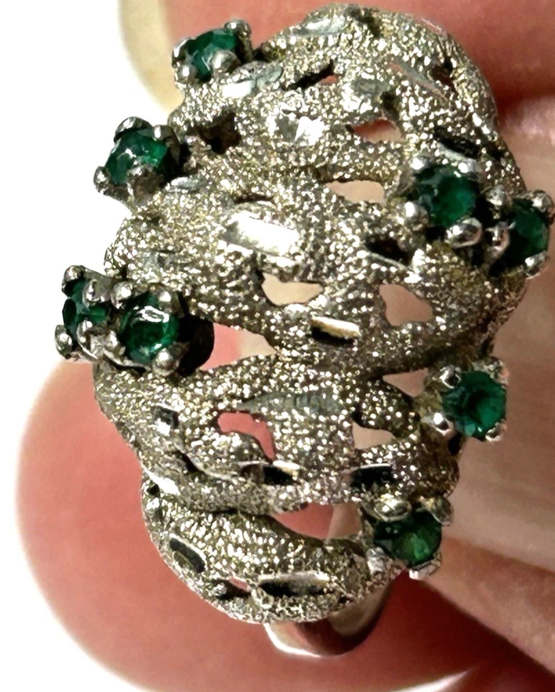 8 emeralds on nugget style setting
