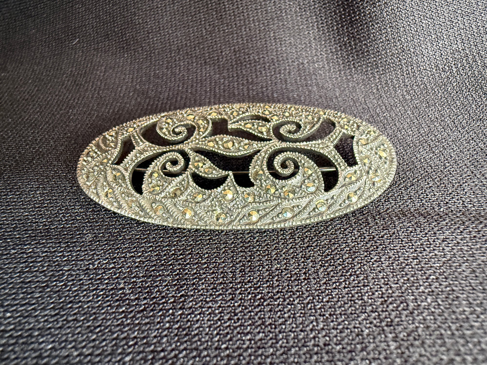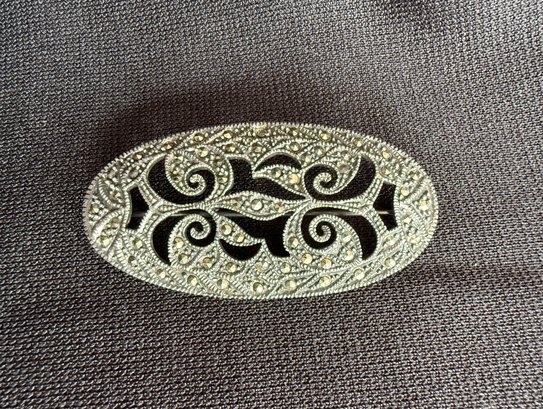 Stunning sterling silver and marcasite brooch with a captivating art nouveau style