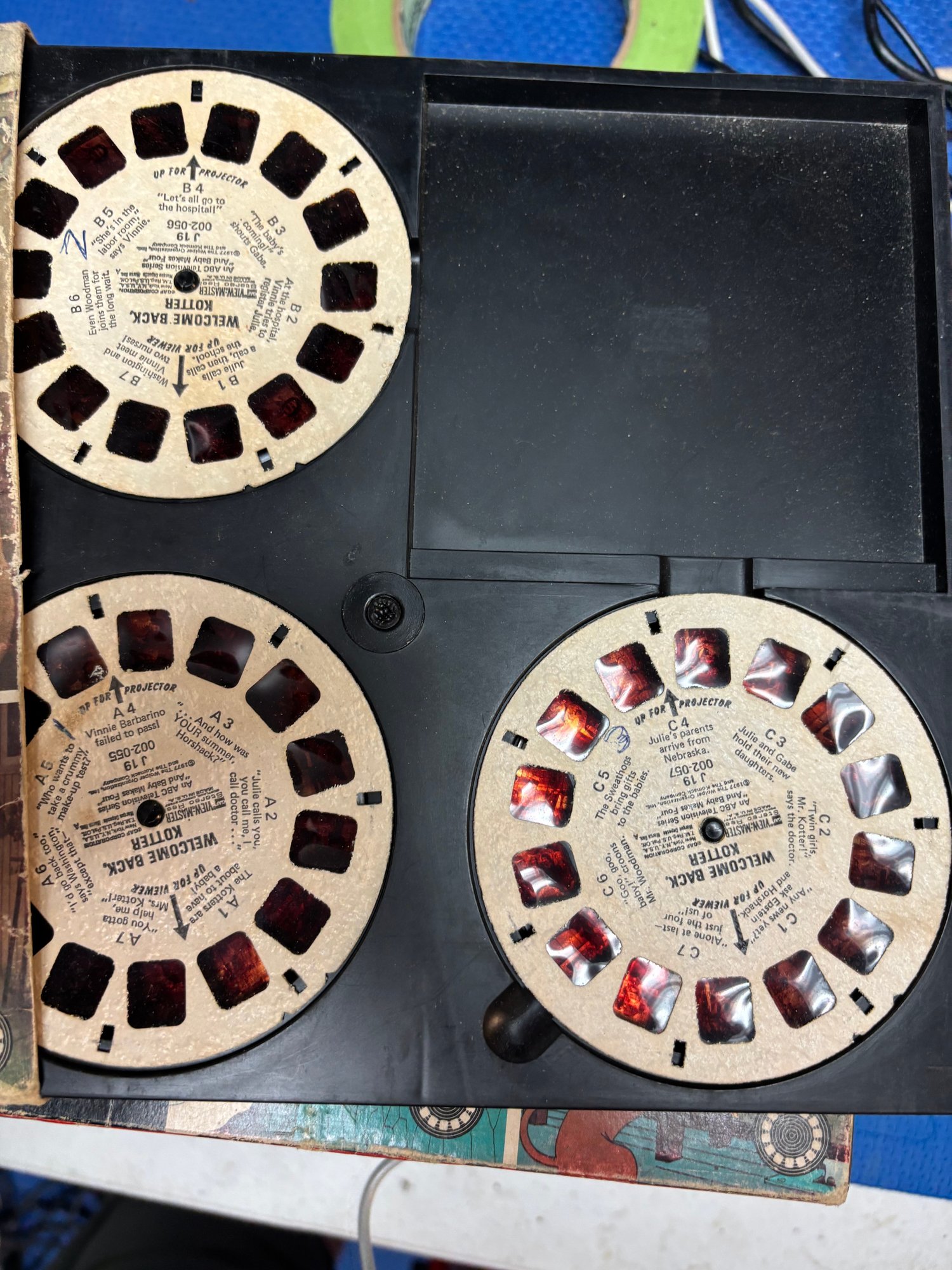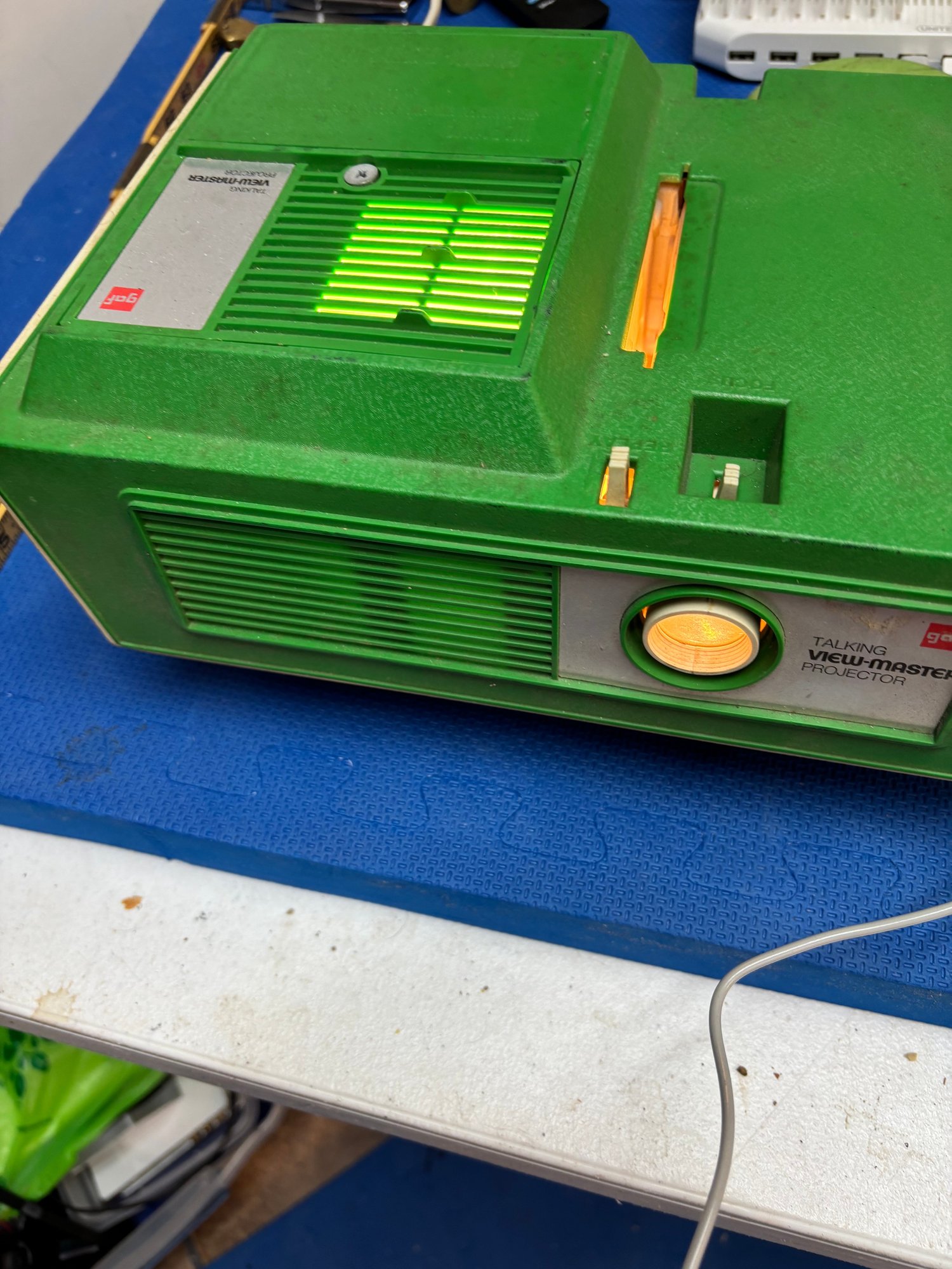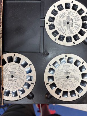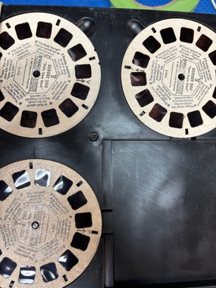 old Vintage Talking View projector with many discs, unit works but doesn't circulate discs to change slide/pic. could be very easy fix buttons work with ac cord