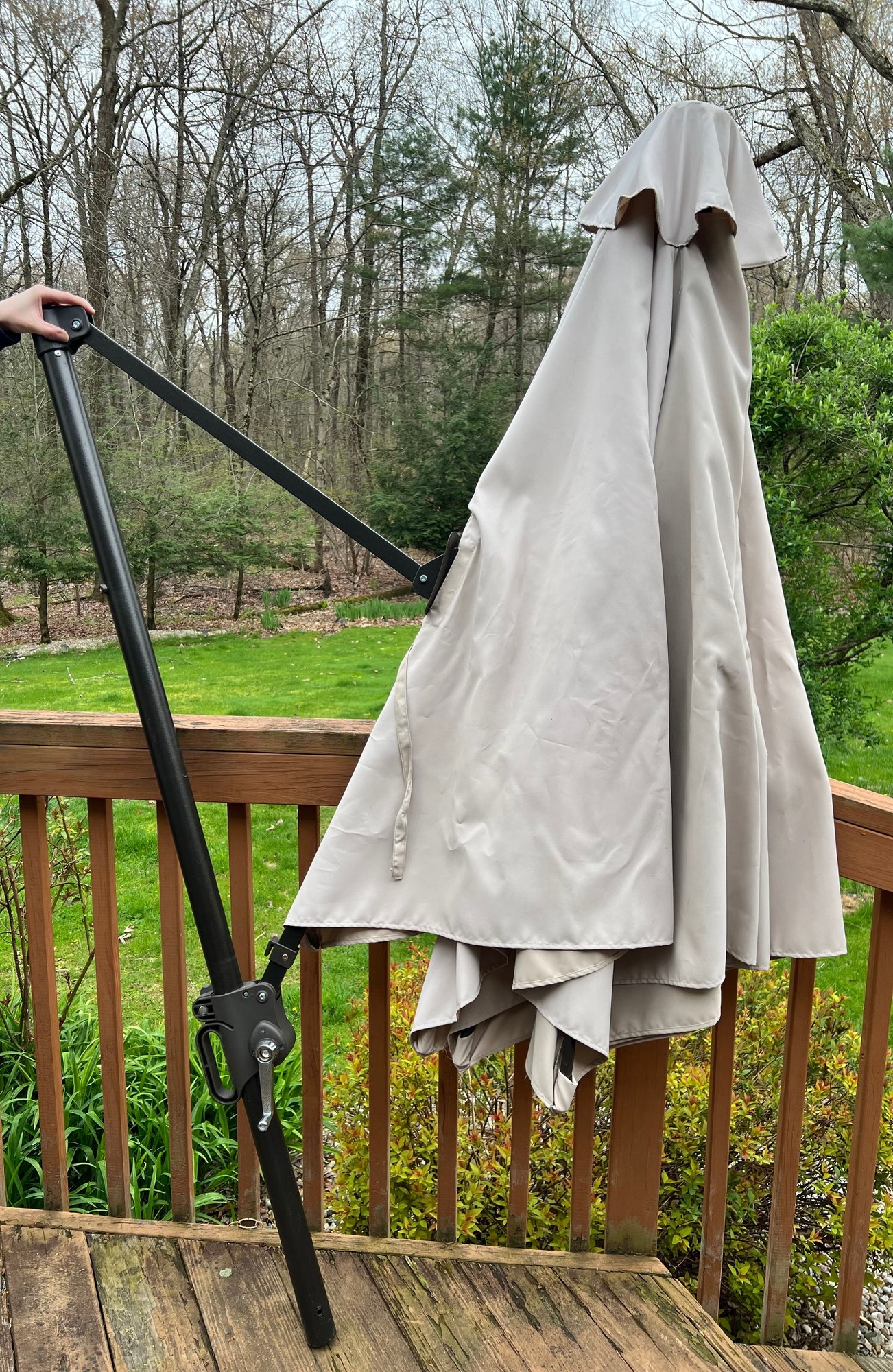 Half Rectangular Round Outdoor Patio Cabana Umbrella Perfect for Balcony, Garden, Deck. Opens at an angle.