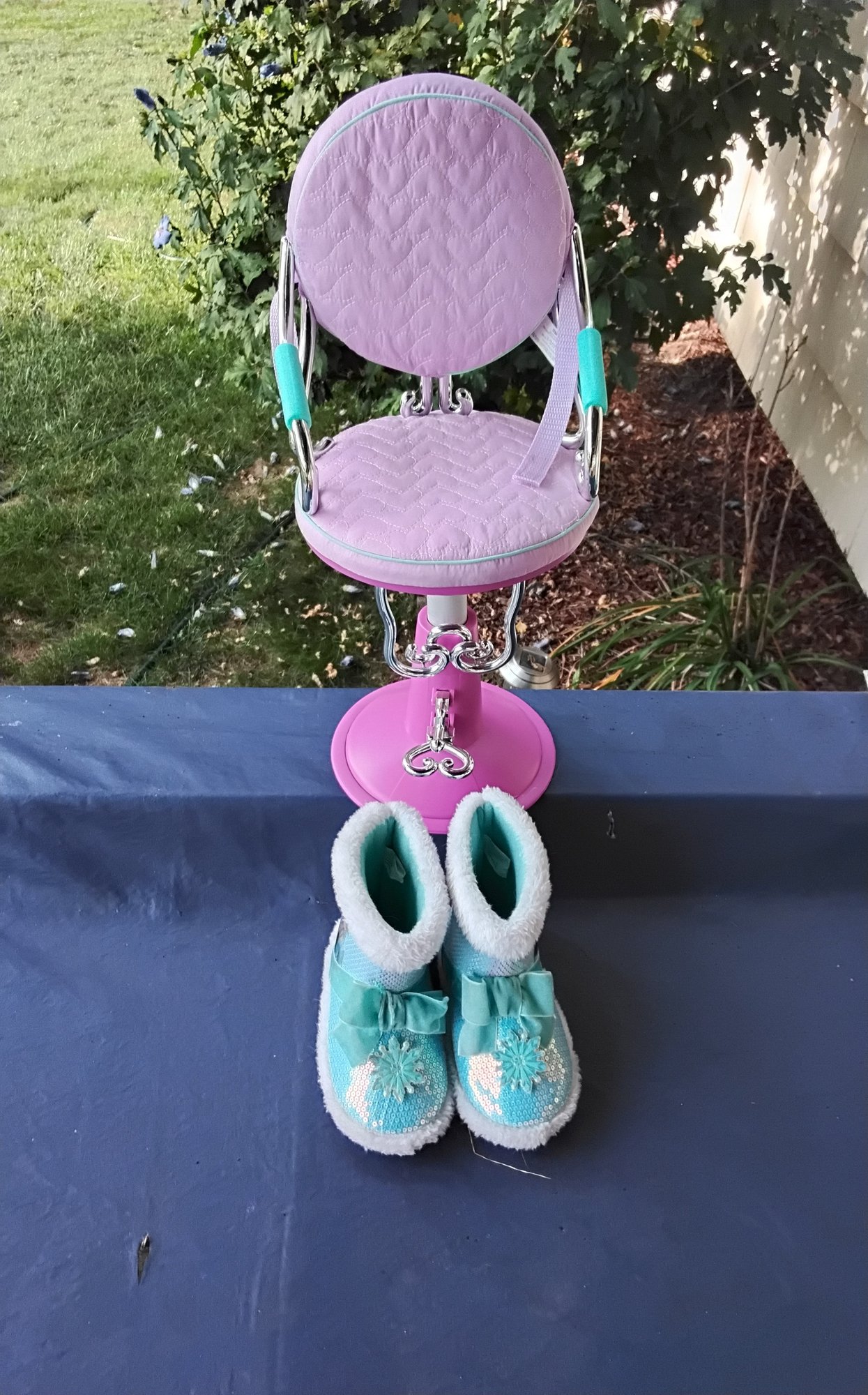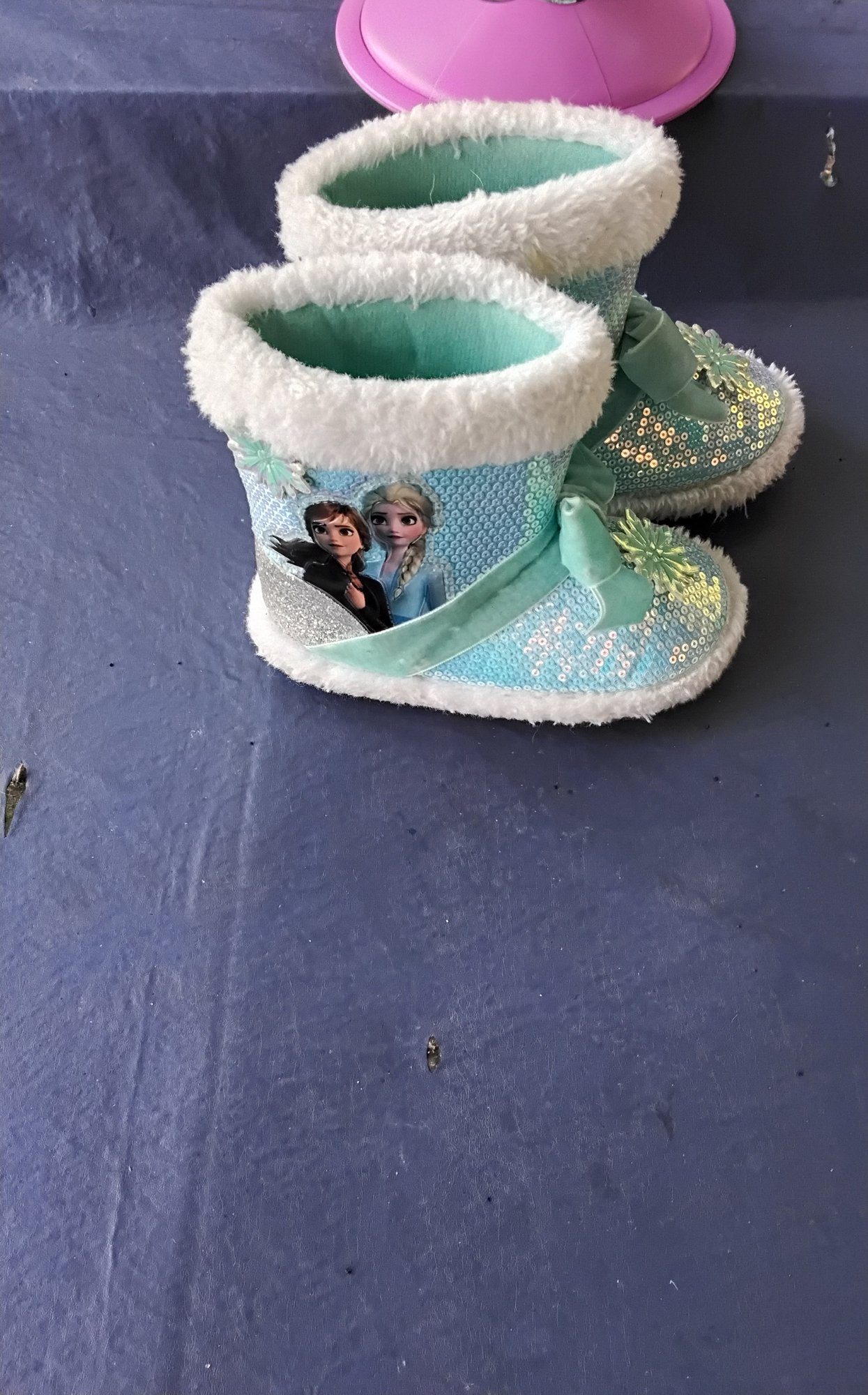 Toy barber chair and girls size 9/10 Disney's frozen boots