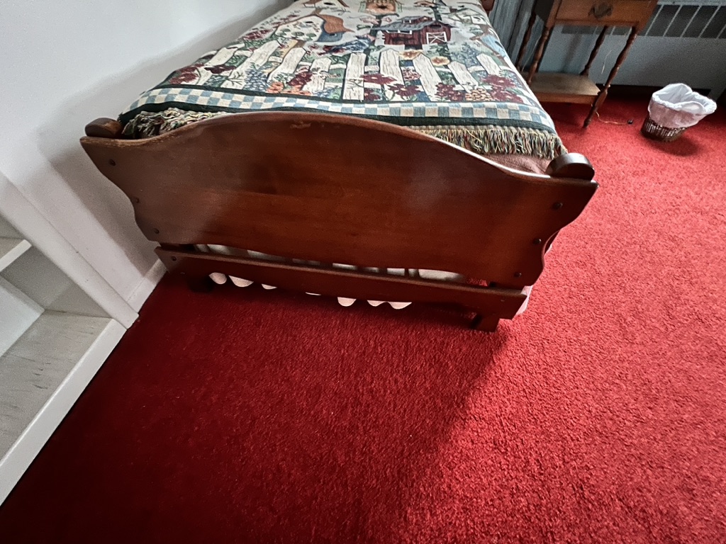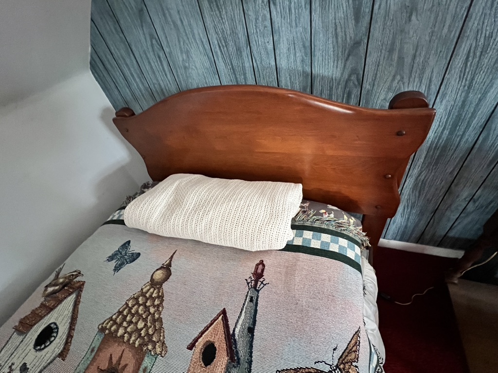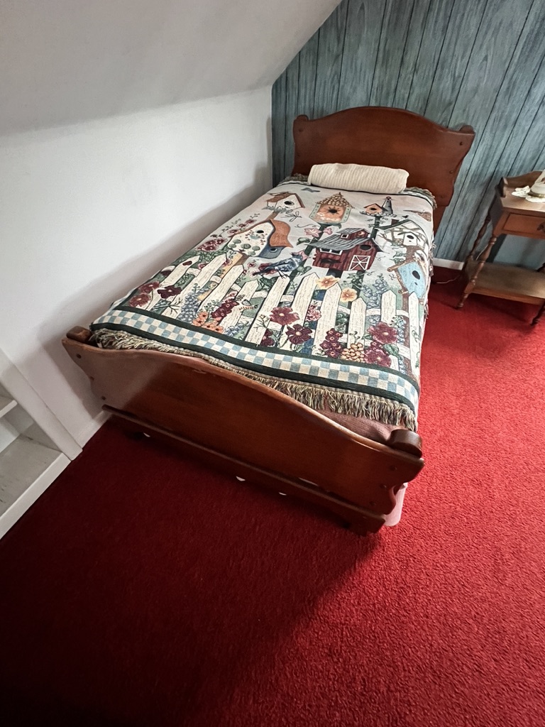 twin bed with everything needed! knotty pine