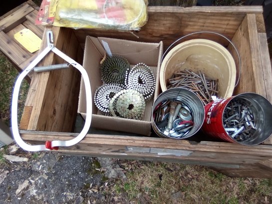 Two Cans A Box And A Pail Full Of Nails Plus Two Miscellaneous Items