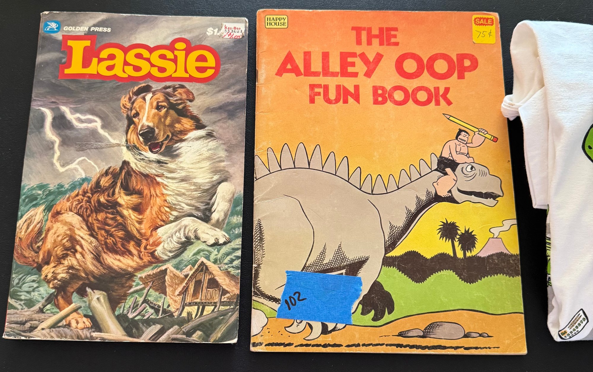 Unused Hanna-Barbera L t-shirt and comic and coloring book