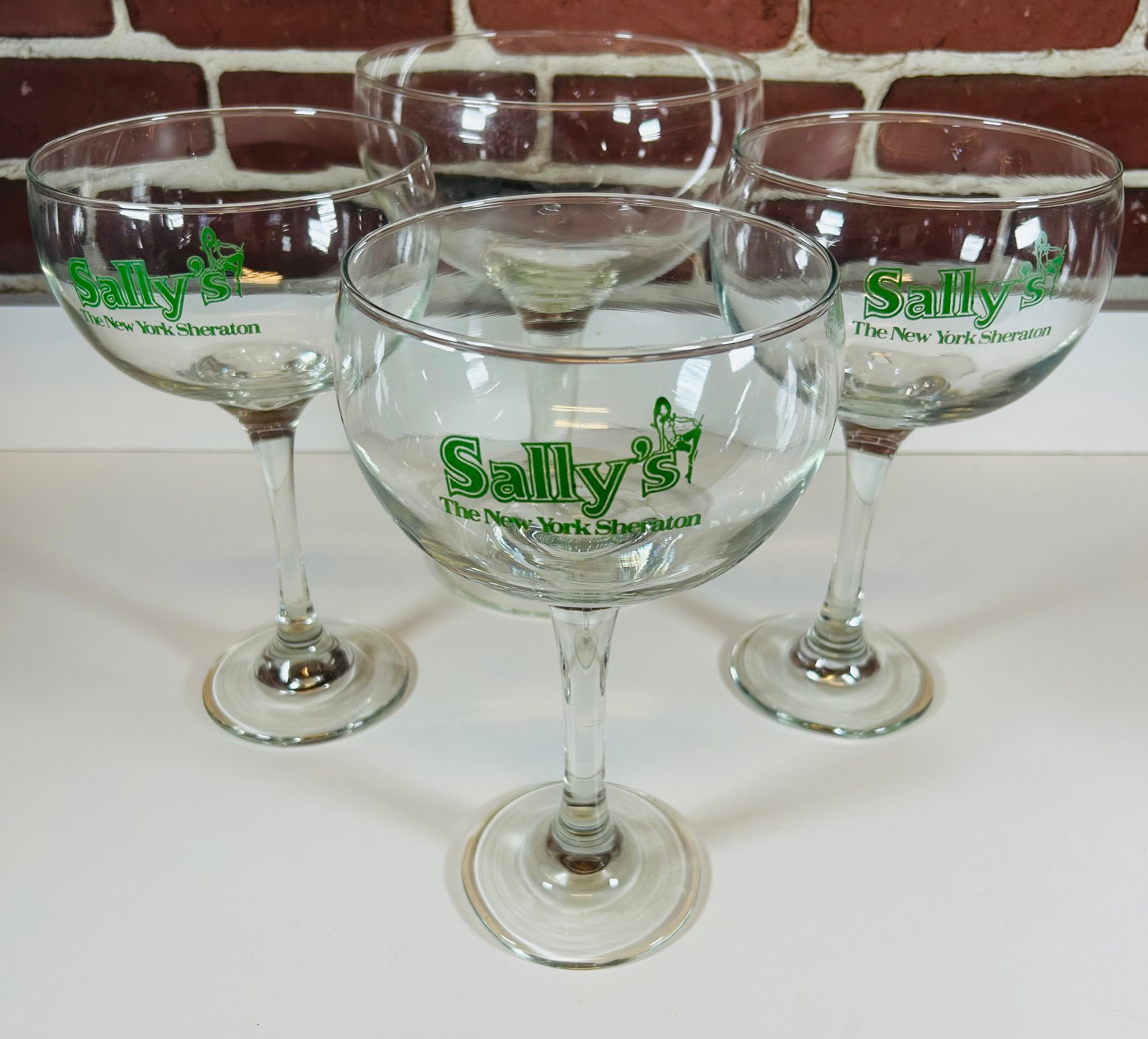 Note: 3 glasses say "Sally's The New York Sheraton" and one does not.