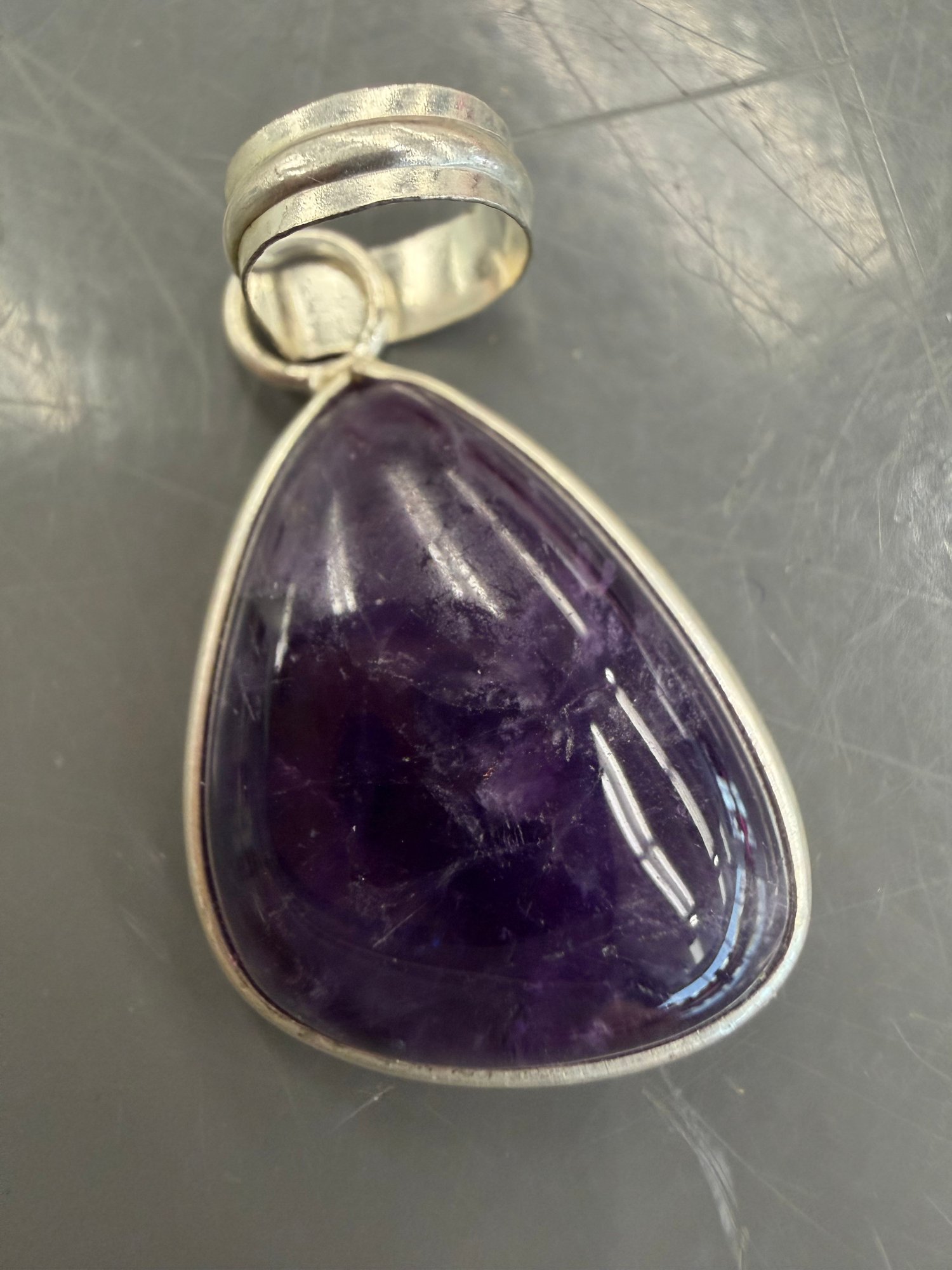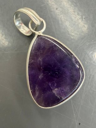Purple Amethyst Stone Pendant Set In A Sterling Silver Bezel