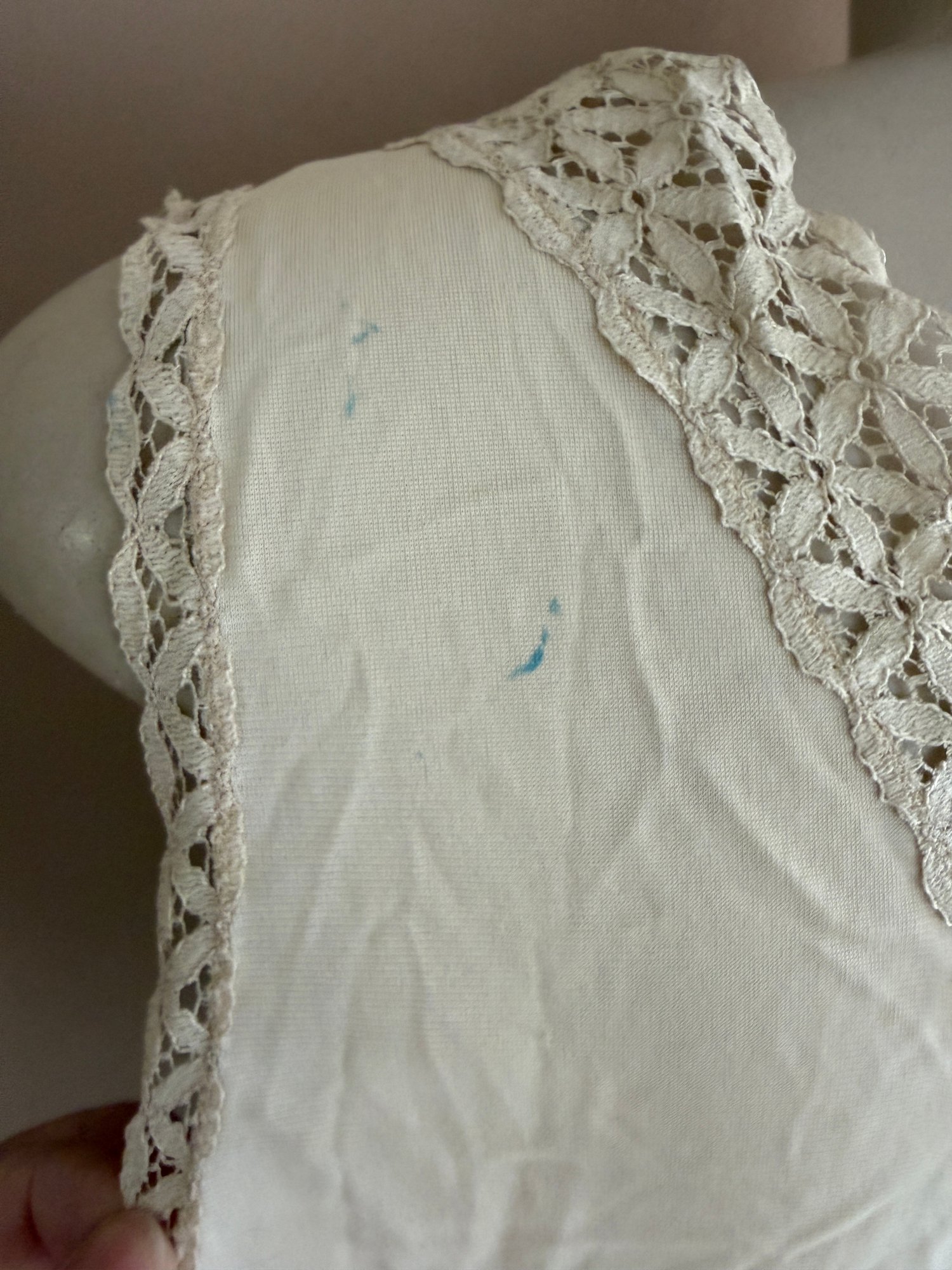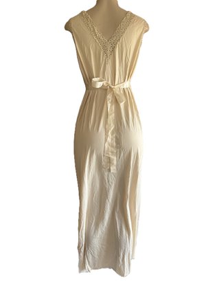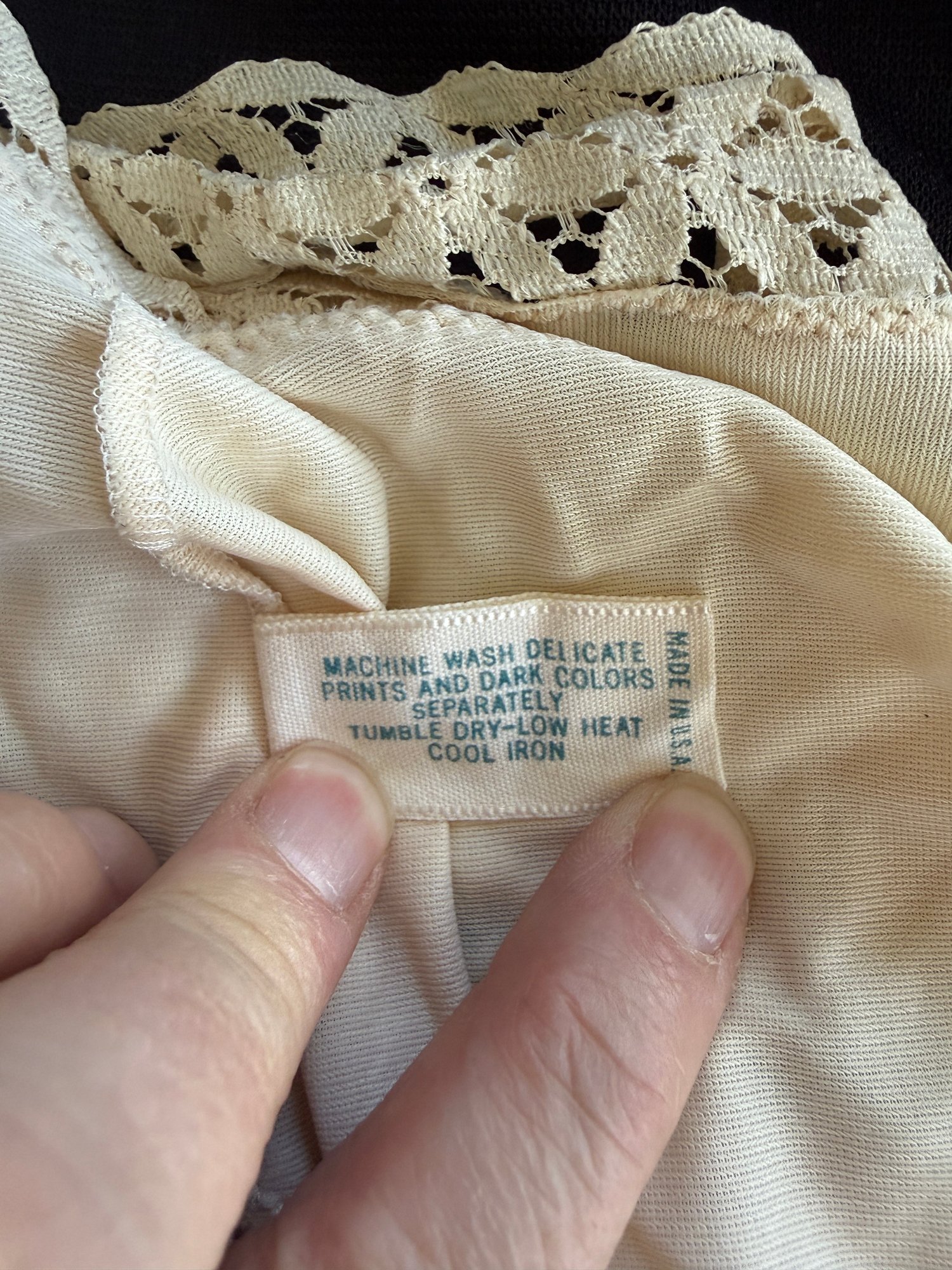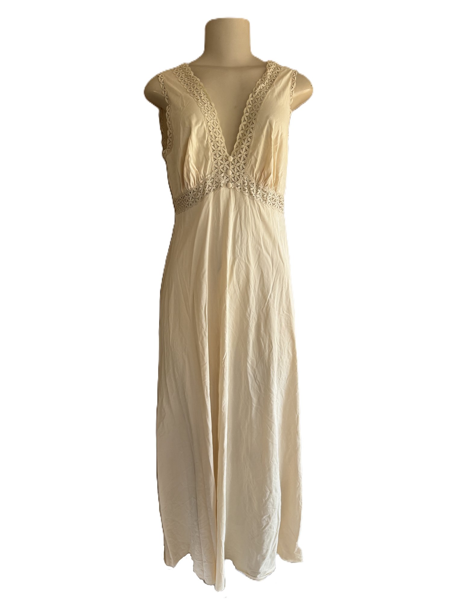 Vintage 1960s Vanity Fair brand nightgown with sweet floral crochet detail at the bust and bow that ties at the back.