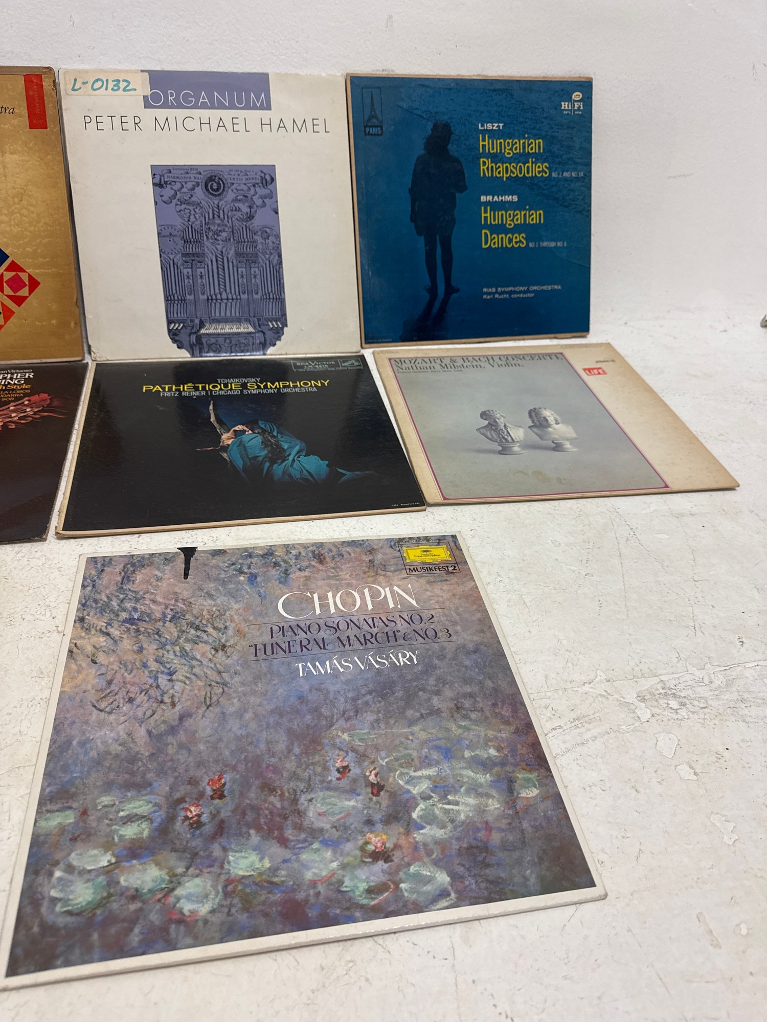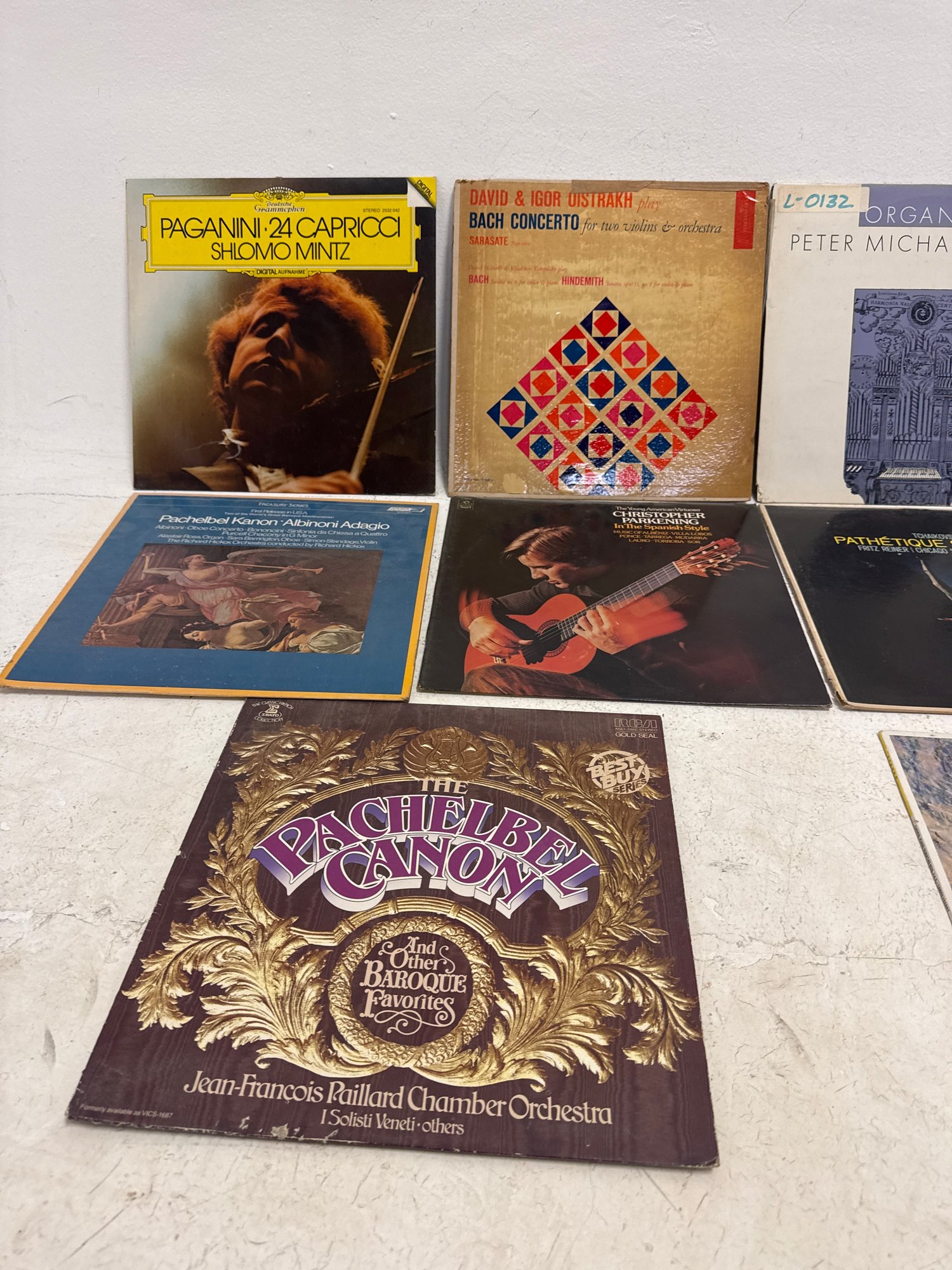 Various Classical Music Vinyl Records Featuring Works By Composers Such As Paganini, Bach, Brahms, And Chopin,