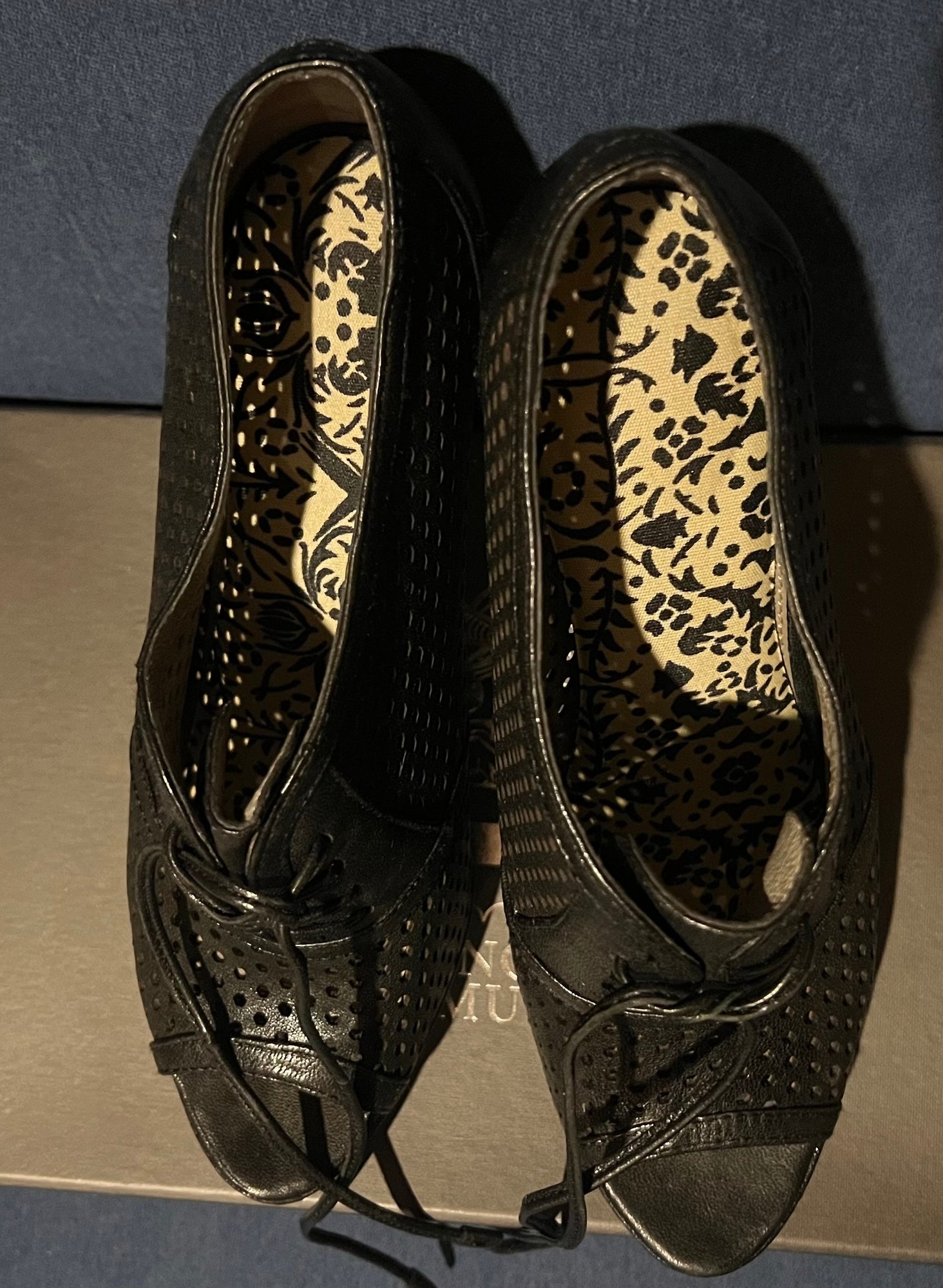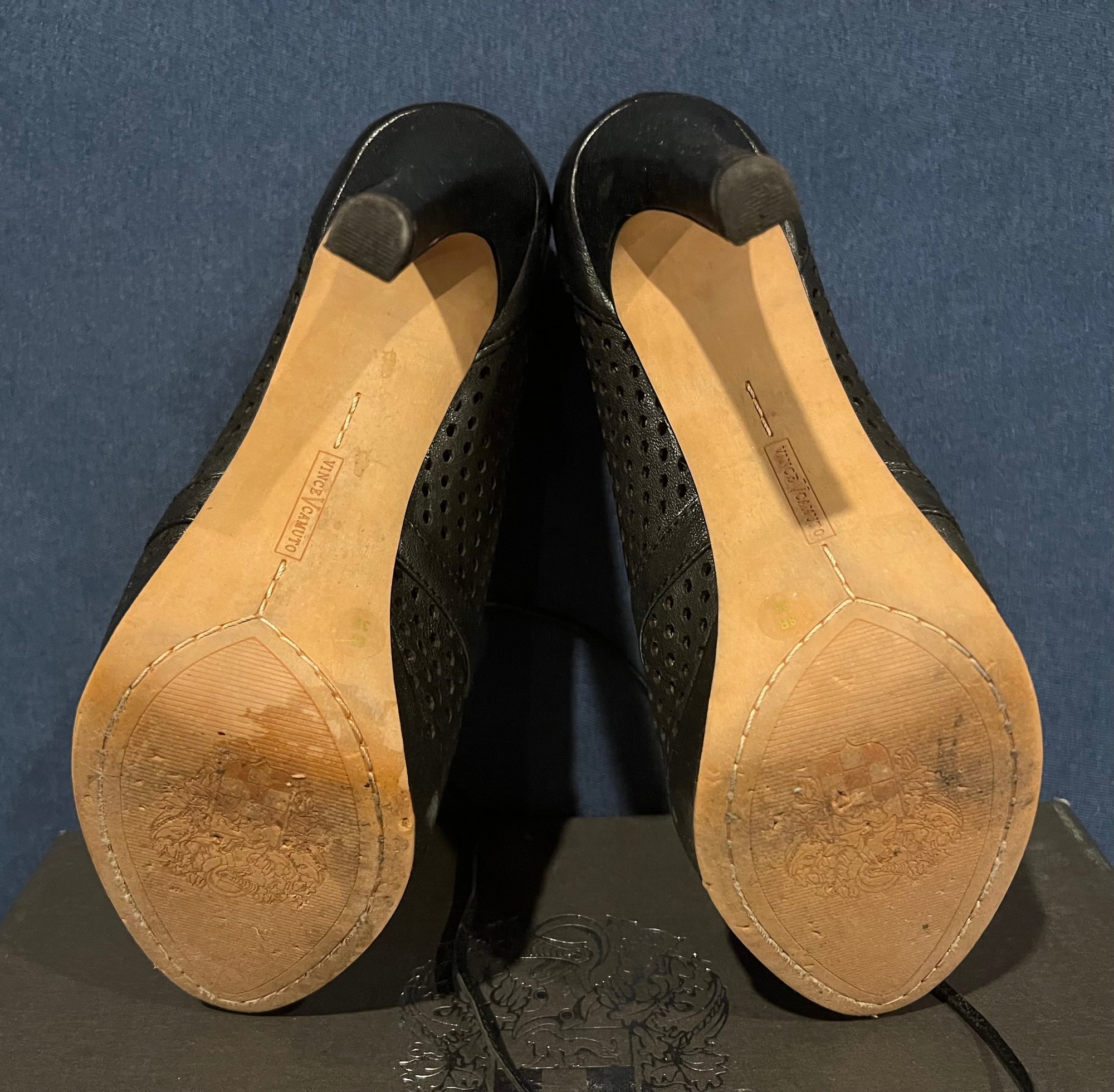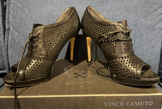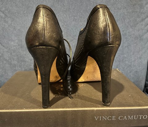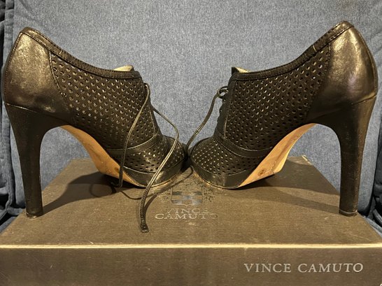 Vince Camuto Black Leather Shoe Bootie High Heel Size 8 Lace-up black perforated booties.