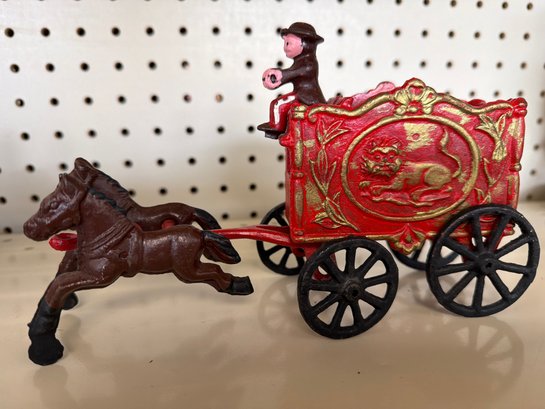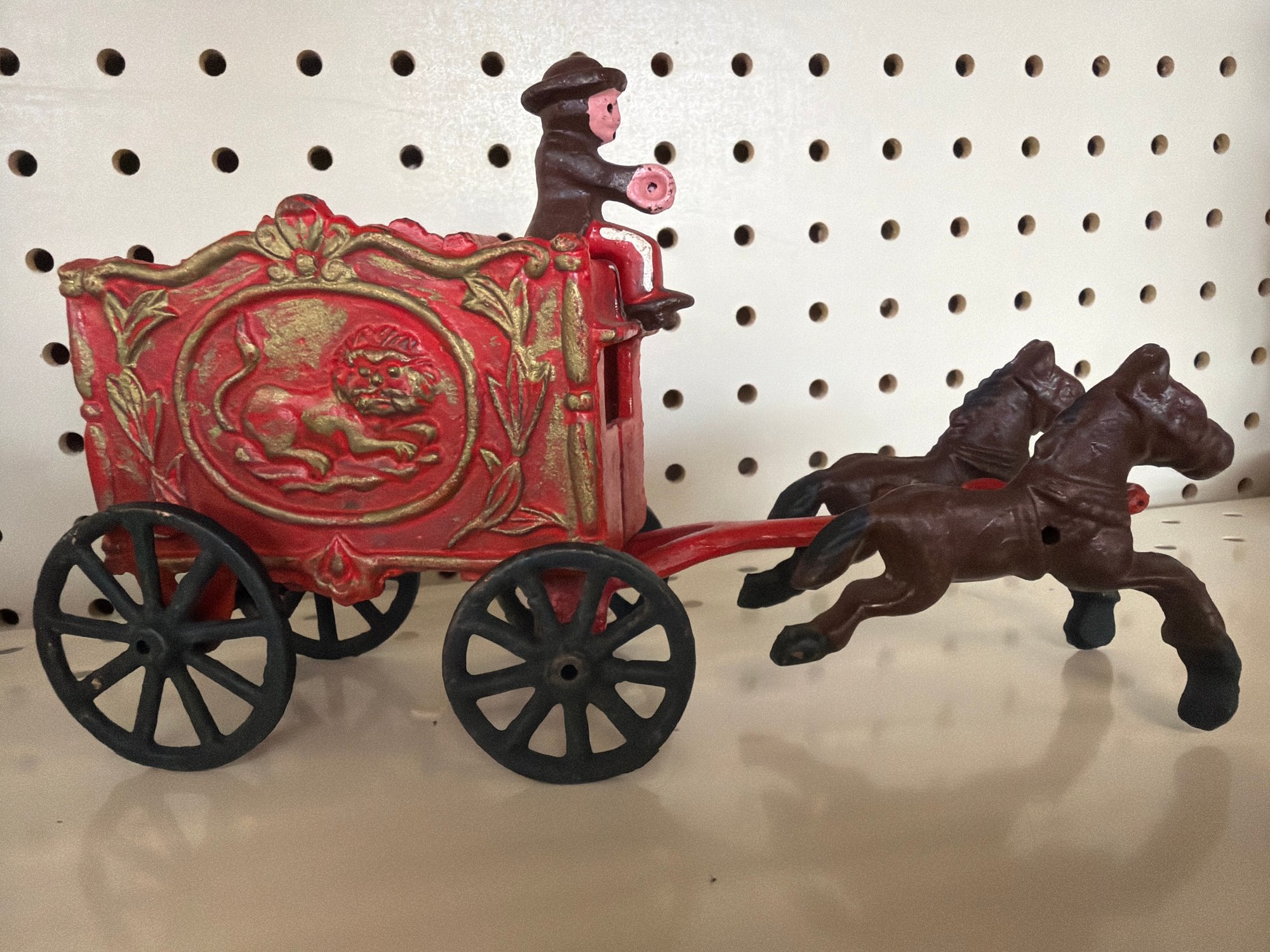 Vintage Cast Iron Horse Drawn Circus Wagon Toy