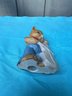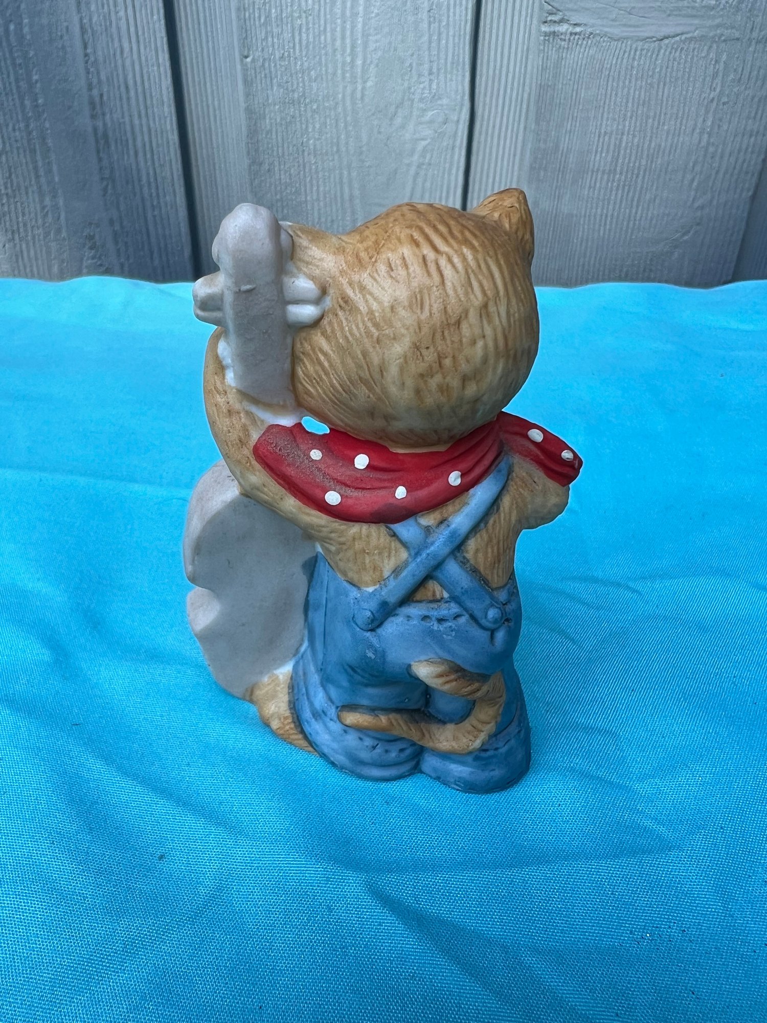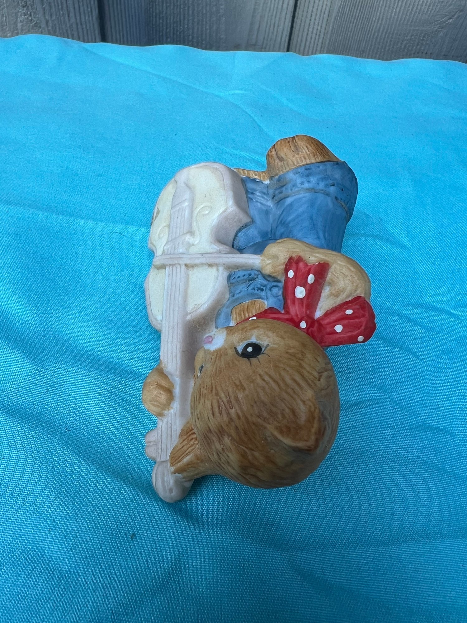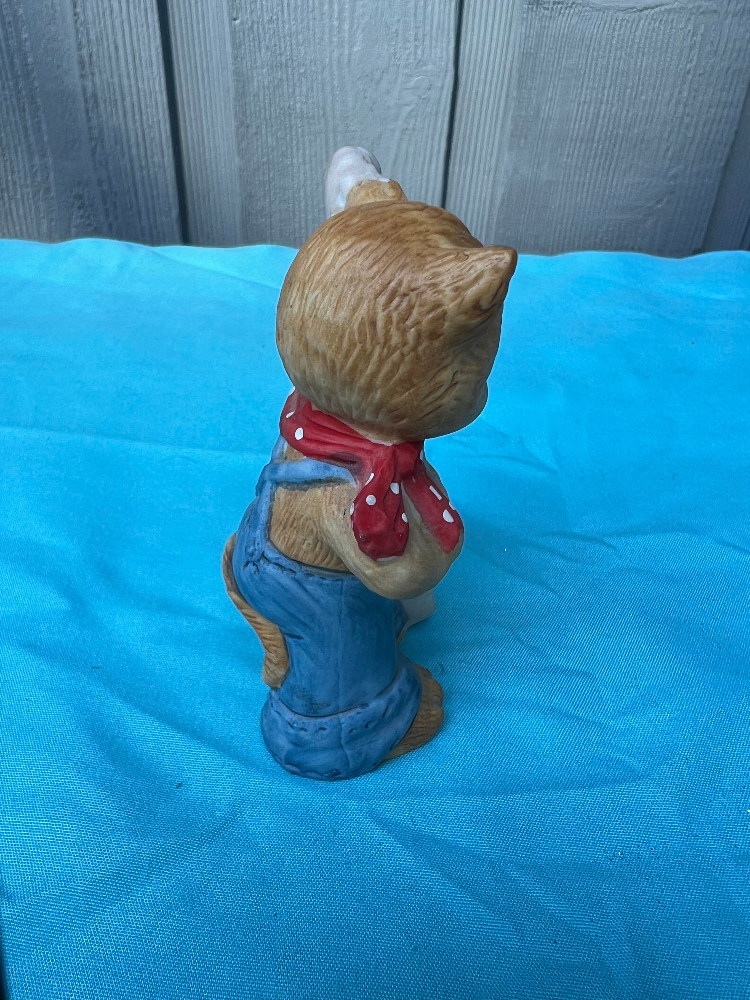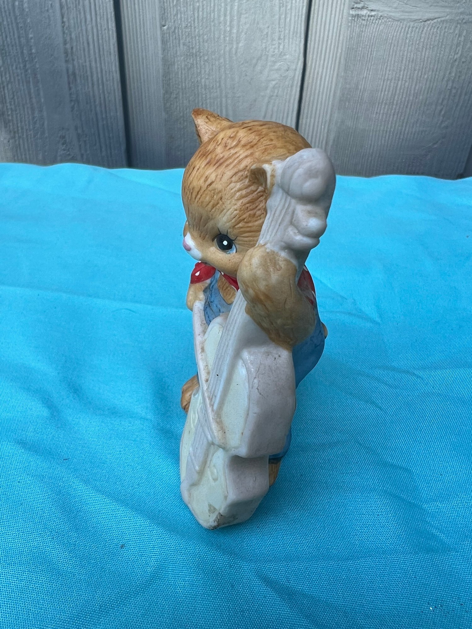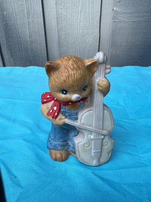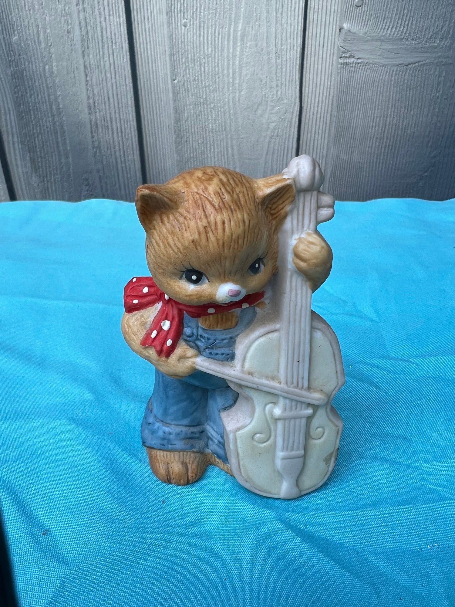 vintage cat figurine depicting a harp player is pre-owned. This collectible piece makes a considerate collection or present for a music or cat enthusiast.