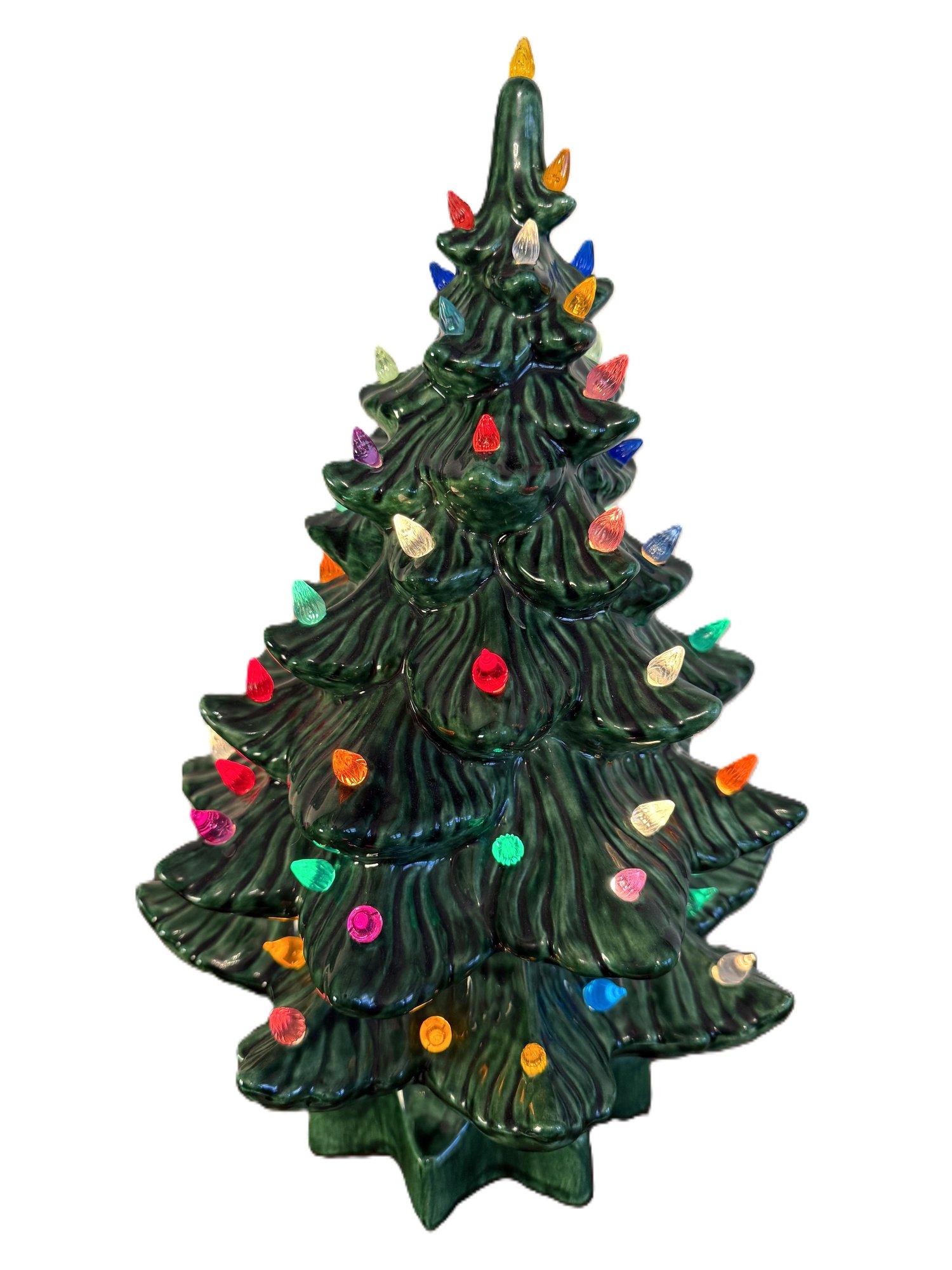 Wonderful ceramic lighted Christmas tree dated 1971, with multicolor lights (that have been glued in at some point) and original base.
