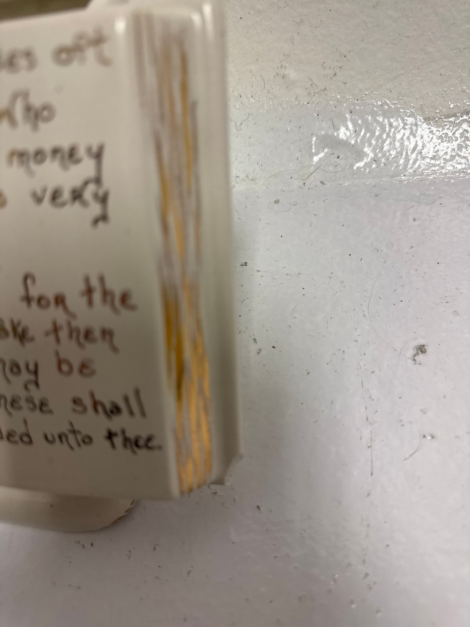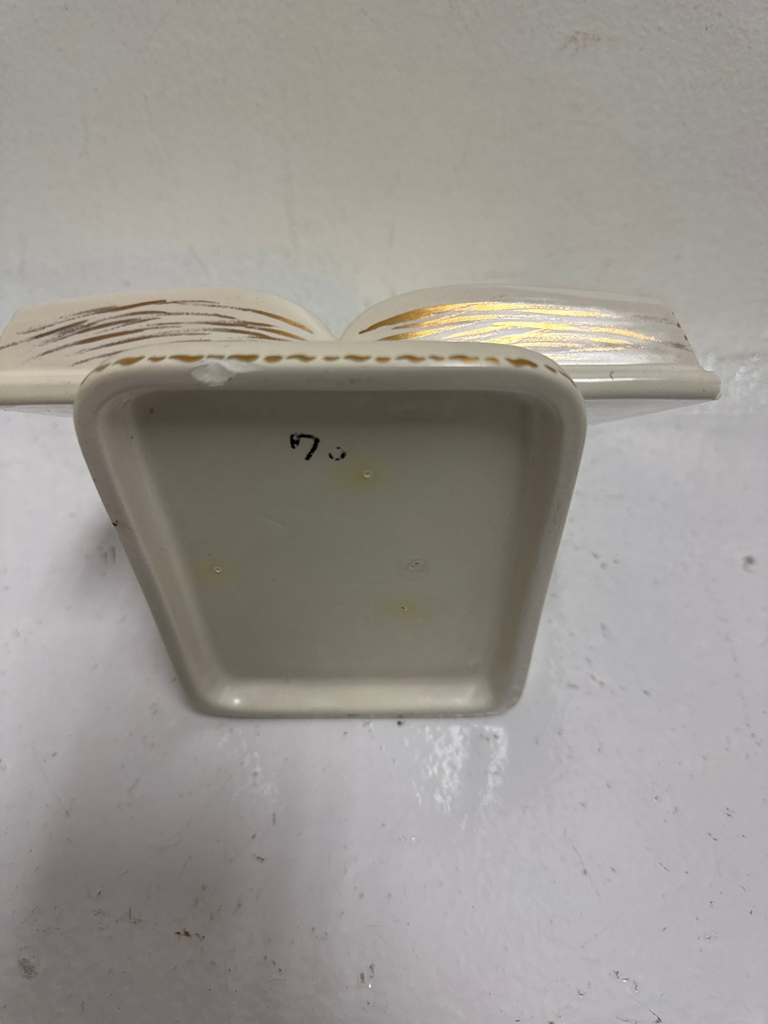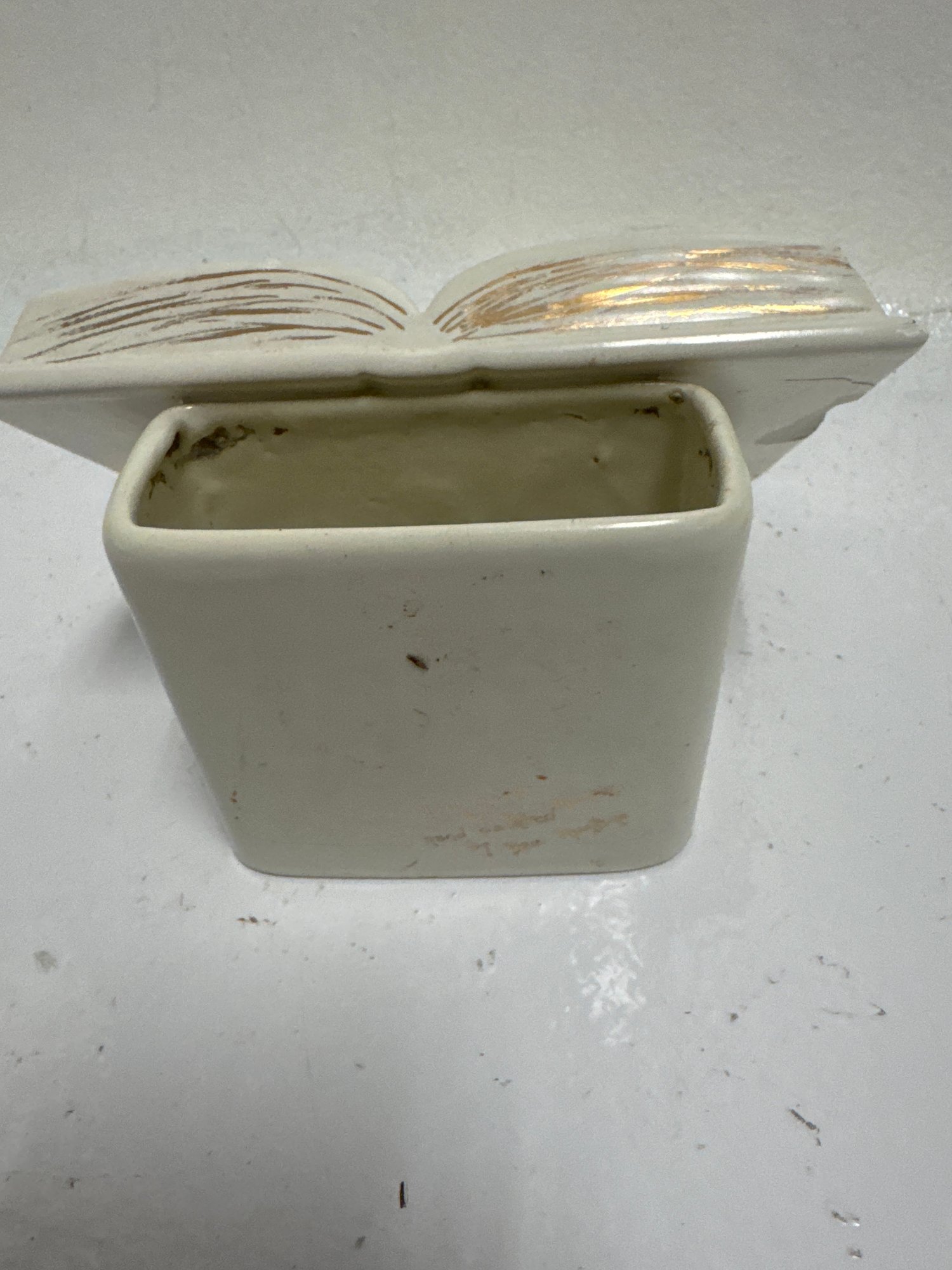 7 inches wide 7 inches tall 5 inches depth. Look at pics for chips and condition. hand painted by Bea Montano