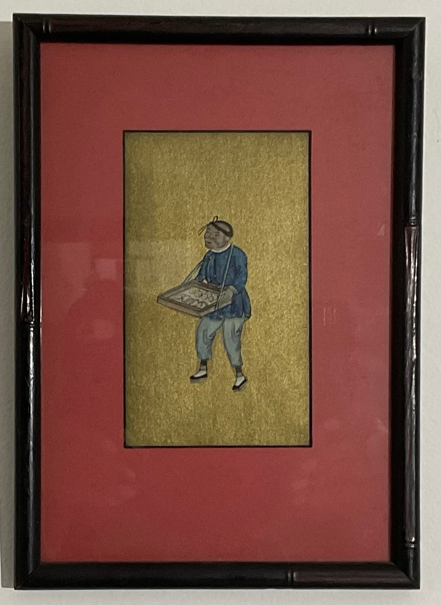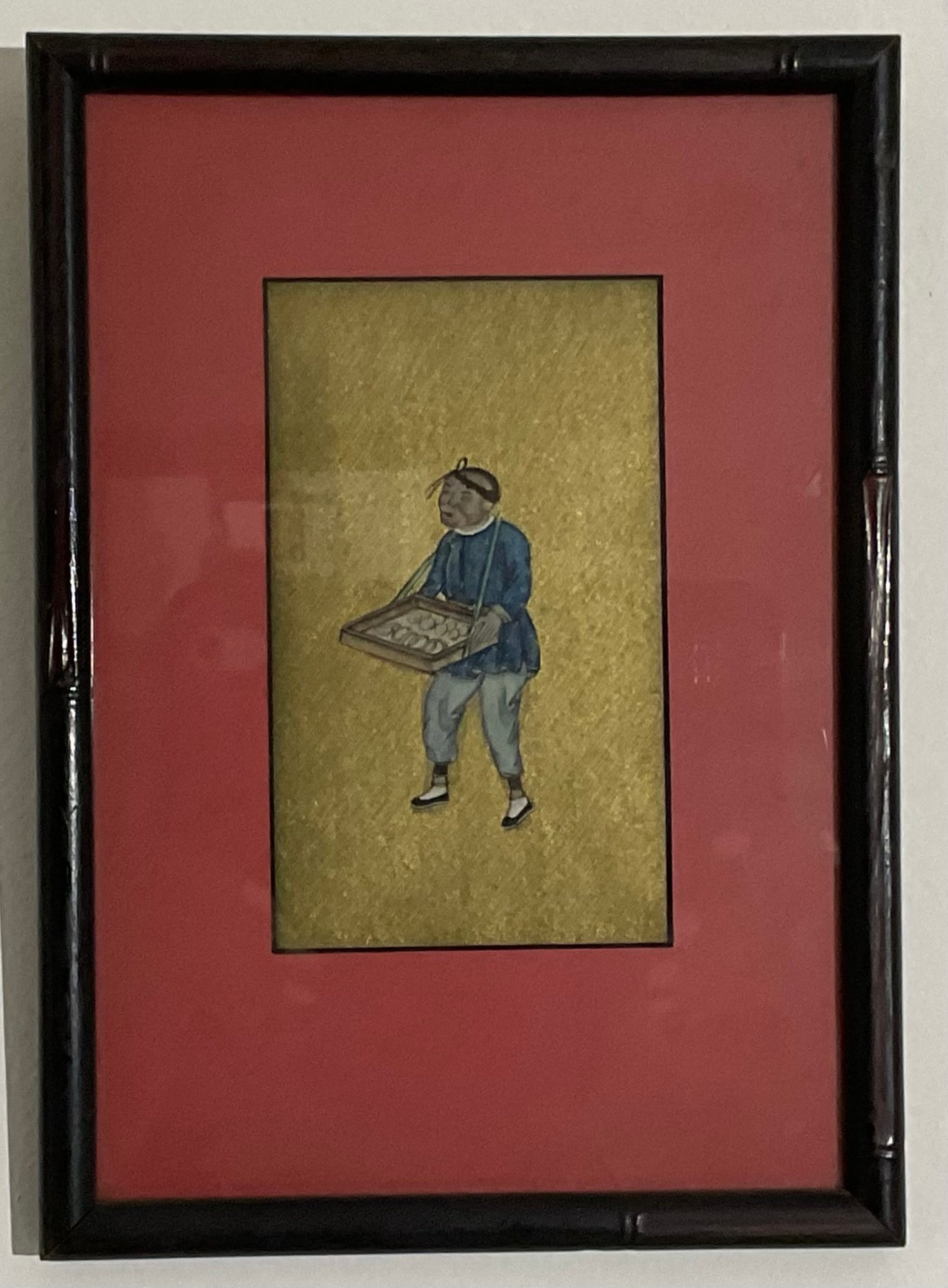 Vintage Chinese Art Piece, Featuring Vendor, Laborer Traditional Attire.