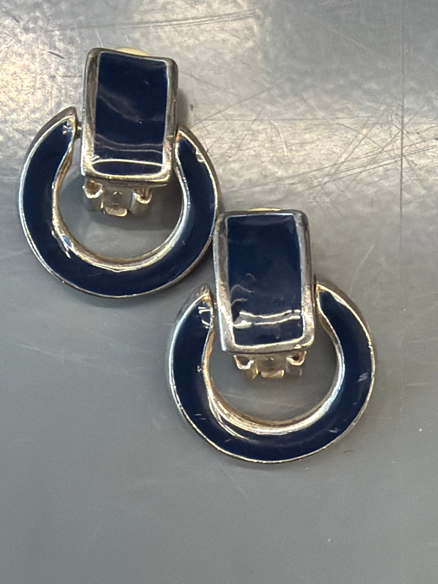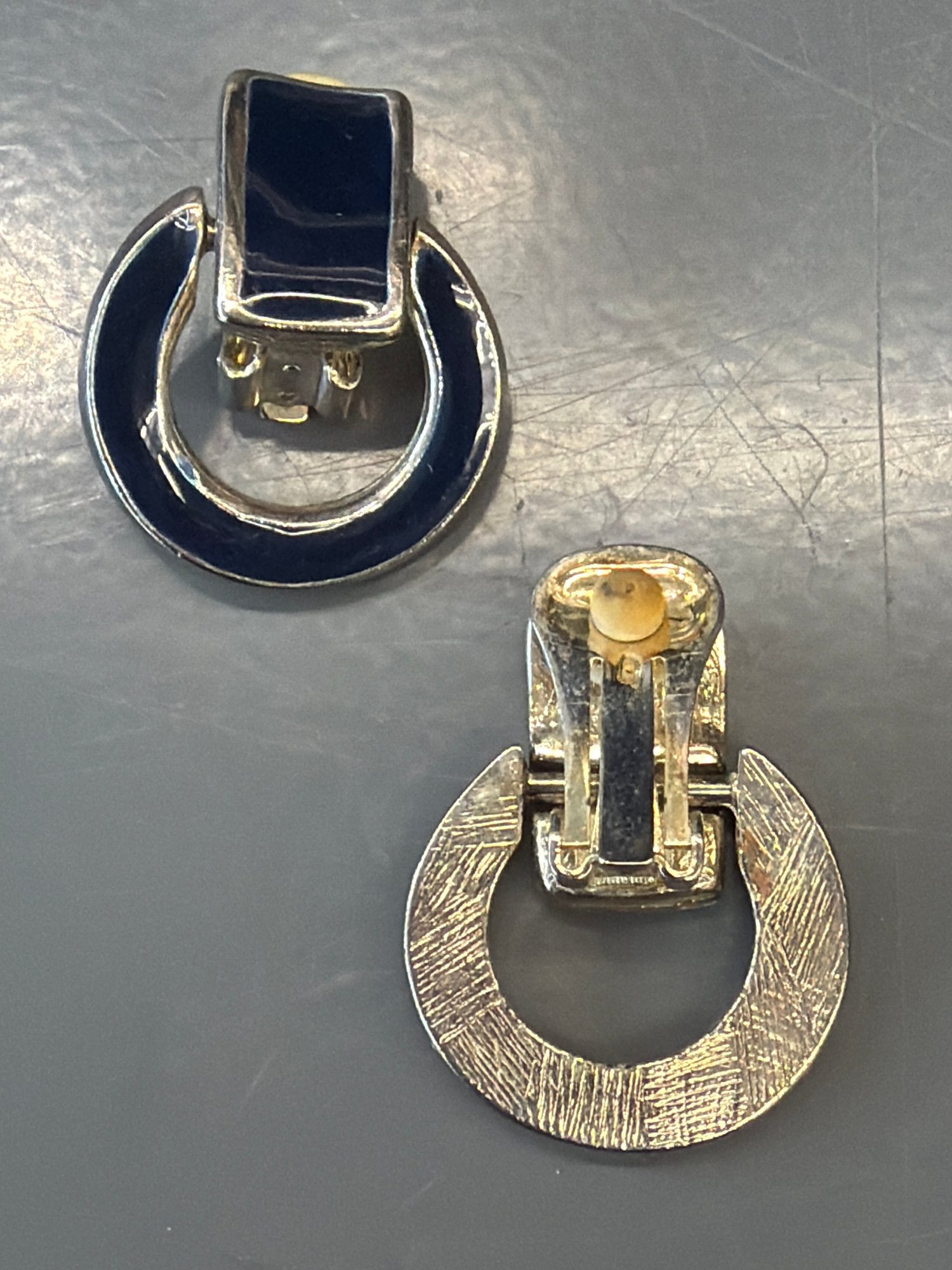 Vintage Clip-on Earrings Featuring A Blue Enamel Inlay