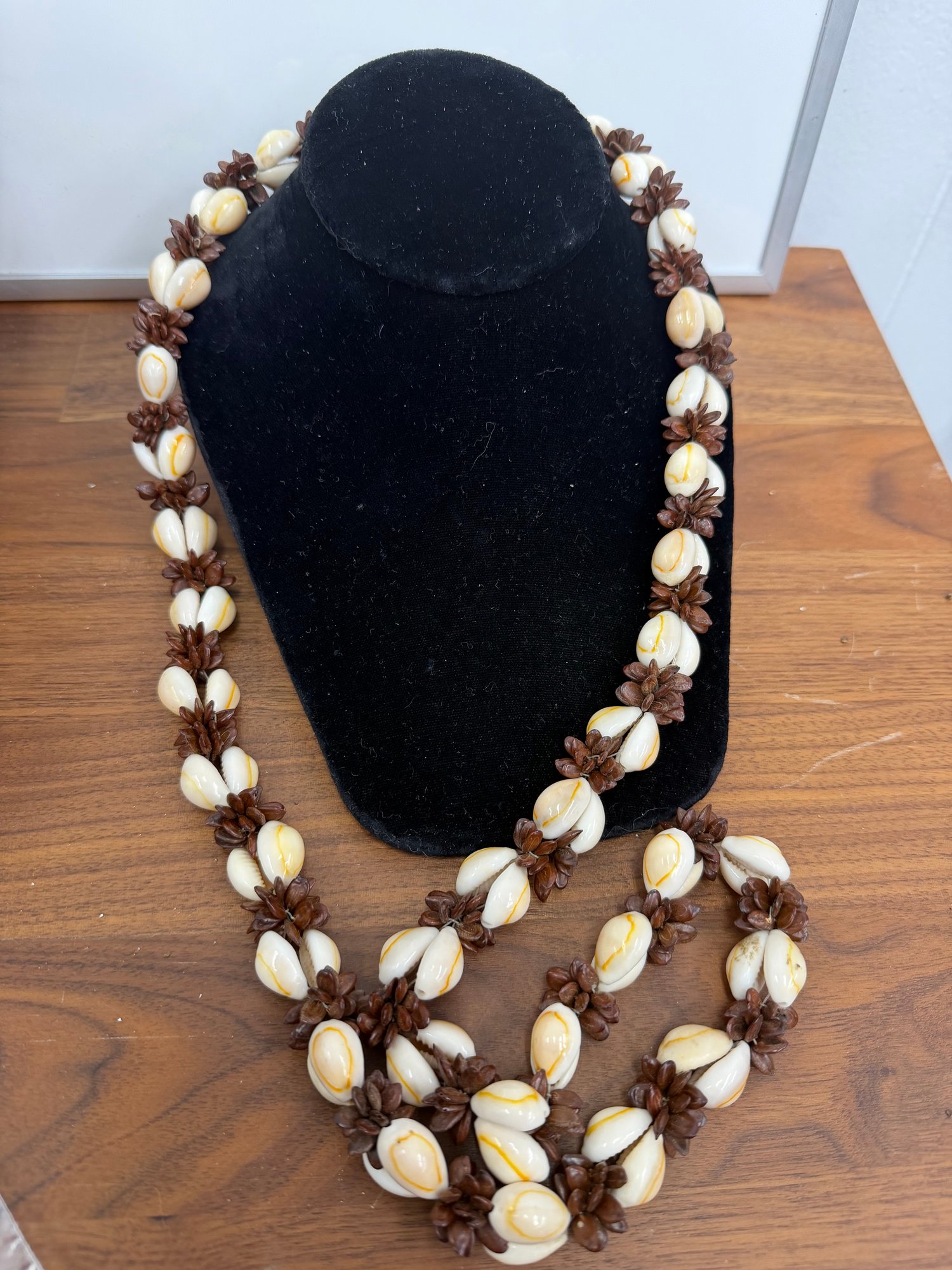 Vintage Cowrie Shell And Seed Pod Lei Style Necklace