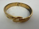 Vintage Gold-tone Bangle Bracelet Is A Monet Hinged Bypass Clamper Style Featuring A Textured Combed Design