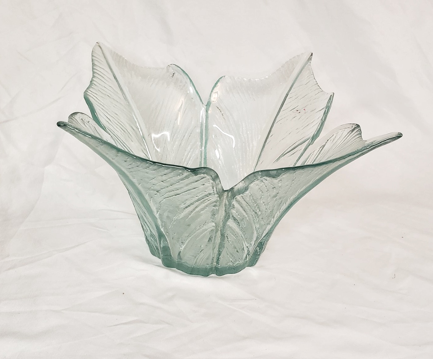 Vintage green art glass tulip petal shaped leaf decorative bowl