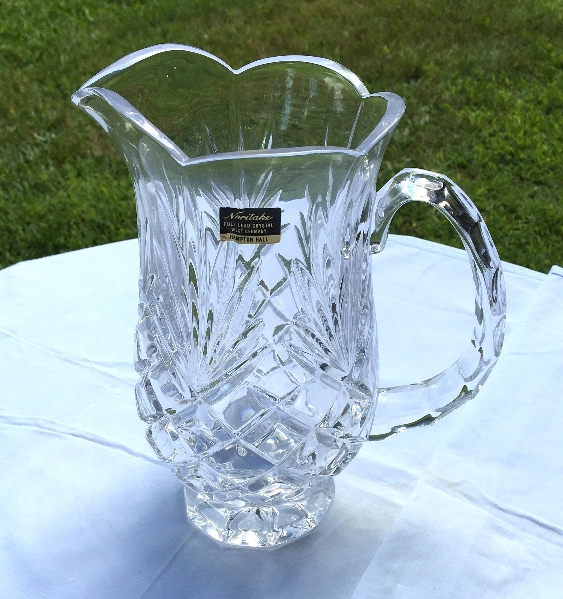 Vintage Heavy Noritake Hampton Hall West Germany Full Leaded Crystal Glass Beverage Pitcher. Holds 32 Ounces. - Item was Estate found, Excellent condition with no chips, cracks or damage. Only displayed in case for many years and still retains original Noritake Brand Sticker. - Nice to use or it Would make a great Wedding or Christmas gift! - See photos for overall condition.