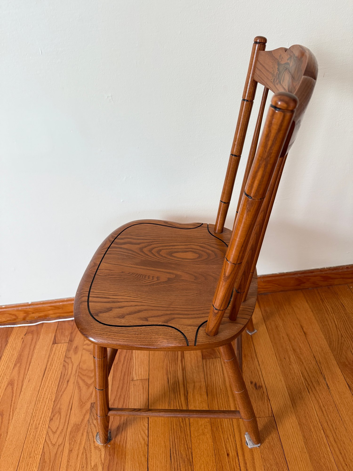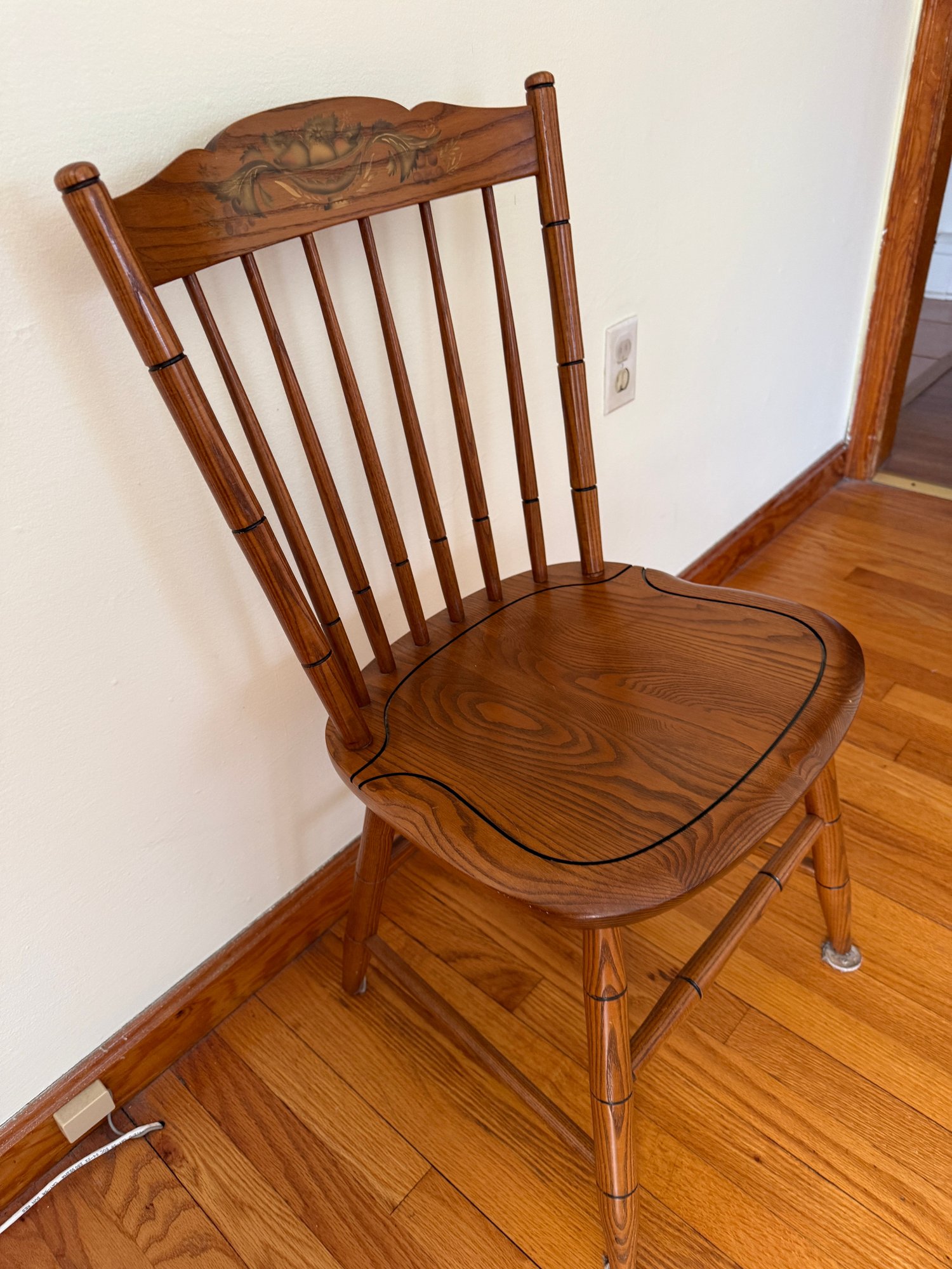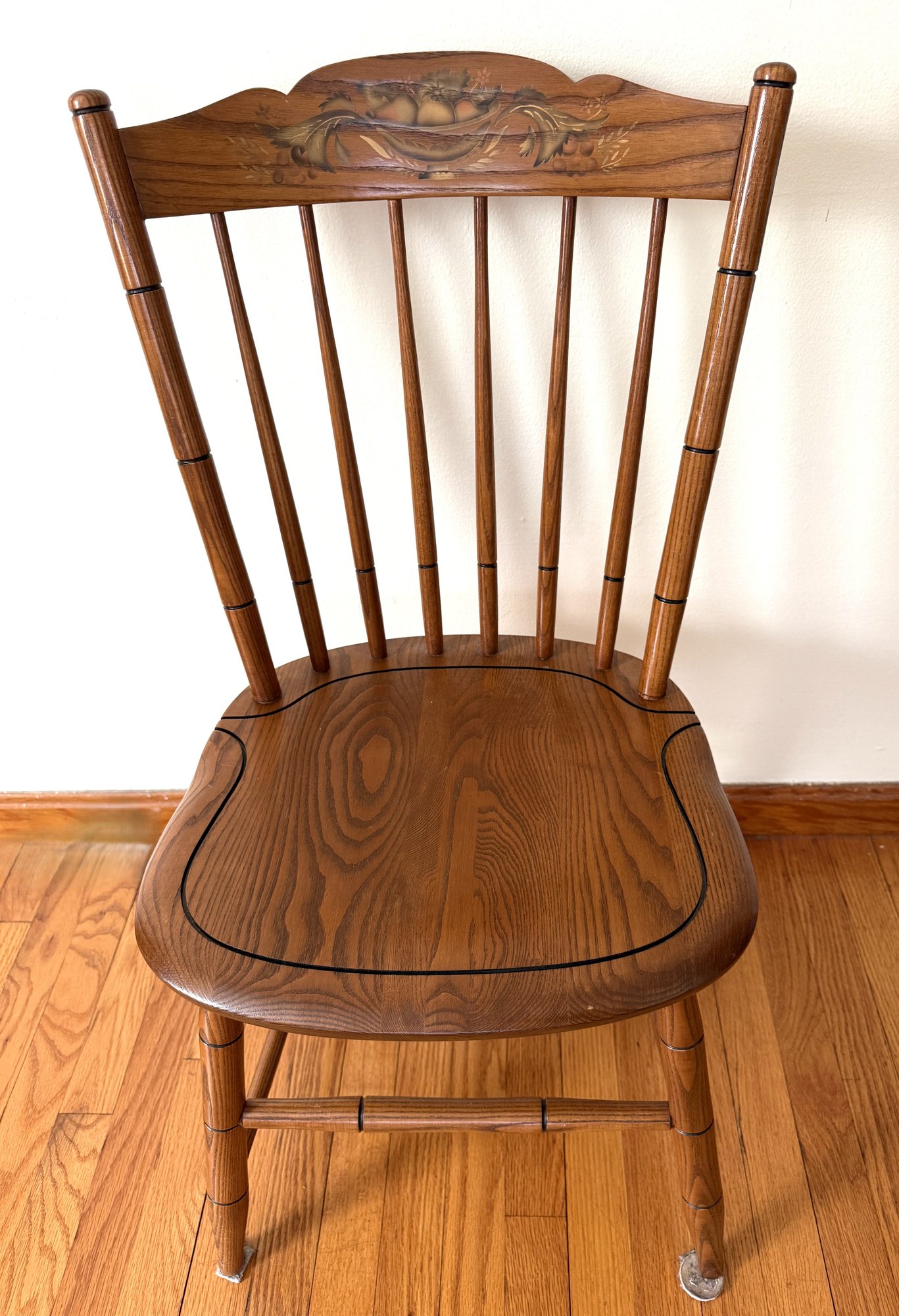 Vintage classic spindle back Hitchcock chair with gold tone detail. This originally was purchased with the Hitchcock desk in this auction for $149 in 1994.