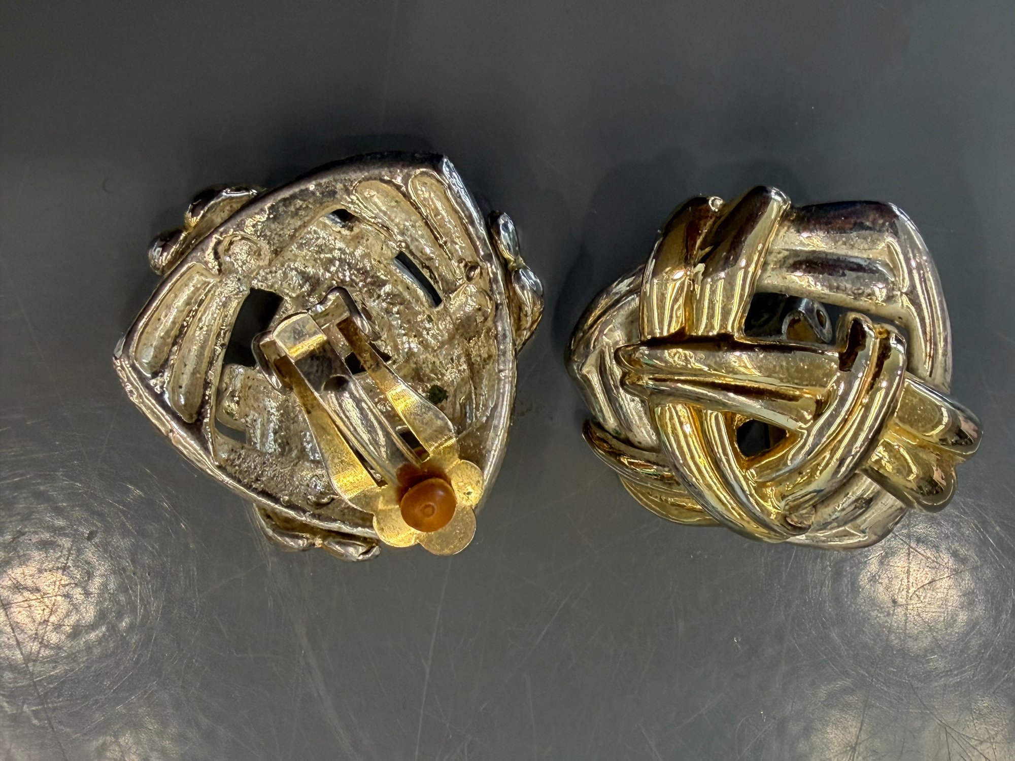 Vintage Intricate Knot Clip-on Earrings Featuring A Substantial Gold-plat Woven Design