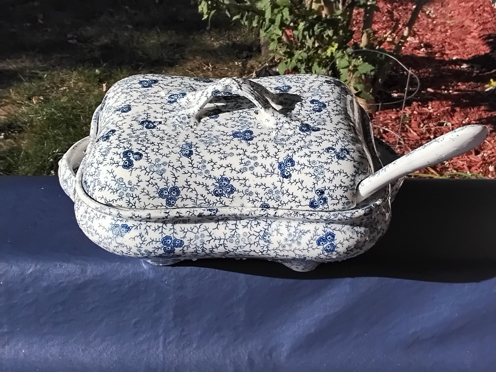 Vintage gravy boat with lid and ladle