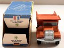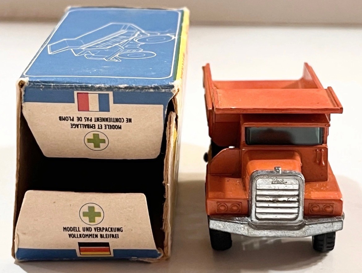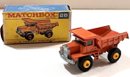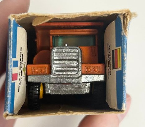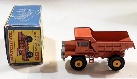 This vintage Matchbox Mack Dump Truck in its original box is great for collectors. The original box is missing one side panel and has some wear due to age. The dump truck is in very good condition. See photos for more details and reach out with any questions!